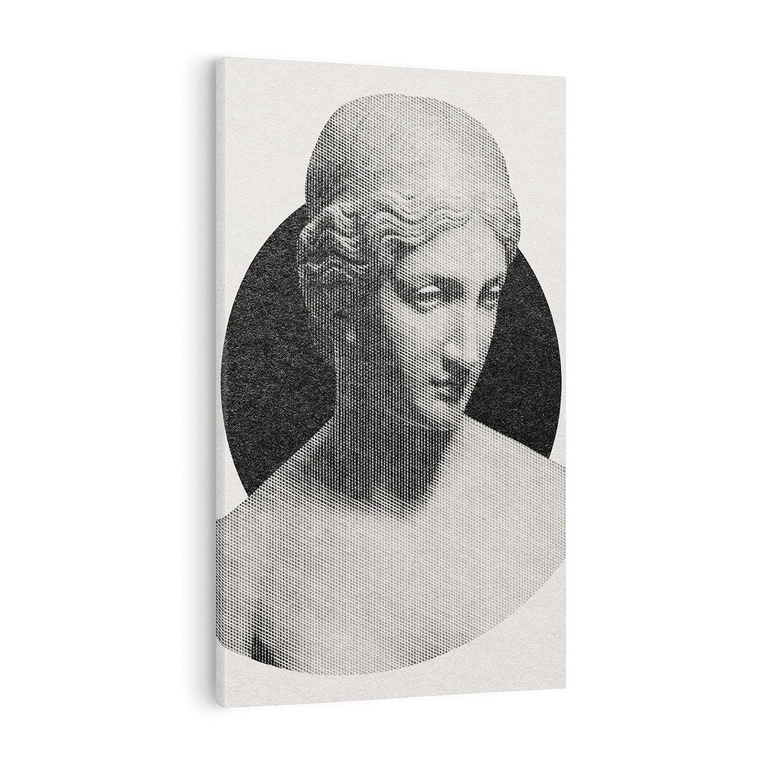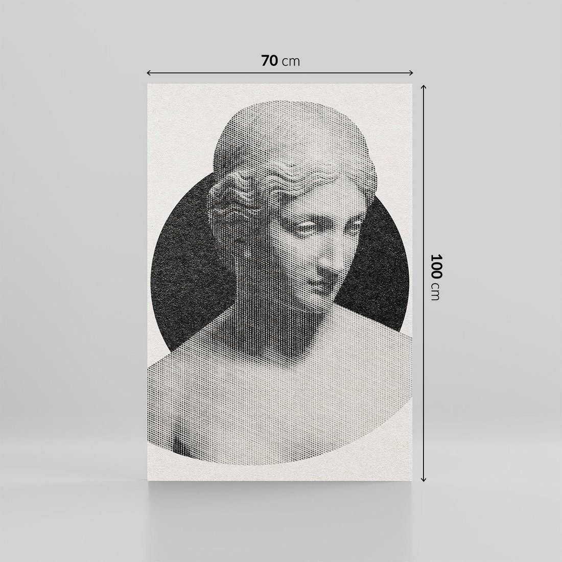 Wybierz ten graficzny kolaż, aby cieszyć się antyczną rzeźbą kobiety w nowoczesnym wydaniu. Czarno-biały obraz dodaje elegancji, a sztuka na płótnie wciąż emanuje magią dawnych czasów.