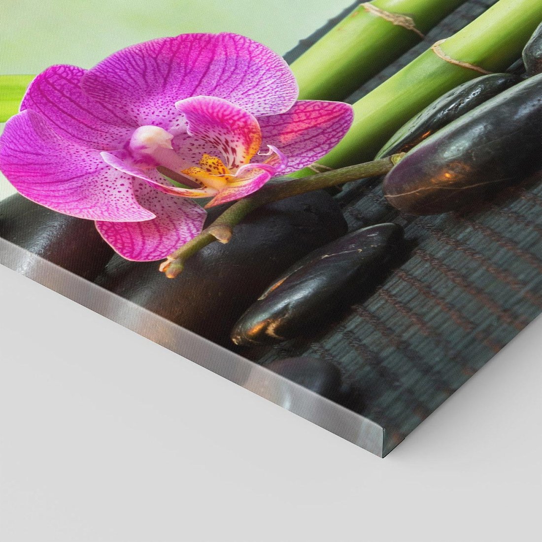 Ten relaksujący obraz na płótnie przeniesie Cię do spa, gdzie kamienie i kwiaty tworzą harmonijną atmosferę. Jego delikatne odcienie, tekstury i zmysłowe detale dodadzą spokoju i równowagi do Twojego wnętrza. Odkryj siłę terapeutyczną natury.