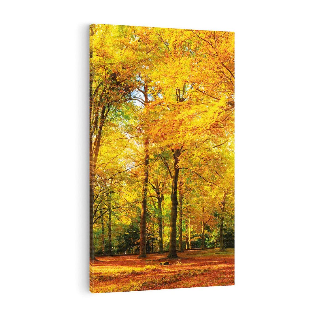 Odkryj urok jesiennego krajobrazu dzięki temu malowniczemu obrazowi przedstawiającemu las w złotych barwach. Kolorowe liście, głęboka czerwień i złote światło tworzą nastrojowy obraz. Ta kompozycja dodaje sezonowego uroku i ciepła, idealna dla miłośników jesiennych krajobrazów i piękna natury.