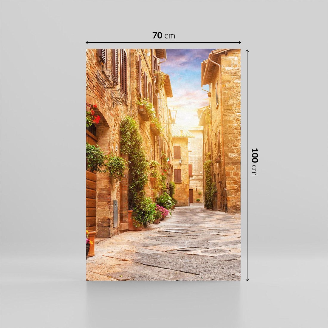 - Obraz na płótnie 70x100 - Urok uliczki miejskiej z kwiatami