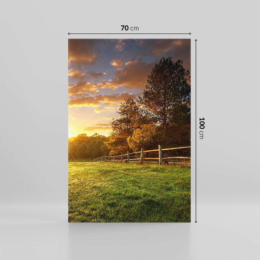 - Obraz na płótnie 70x100 - Urok zachodu słońca na łące z drzewami