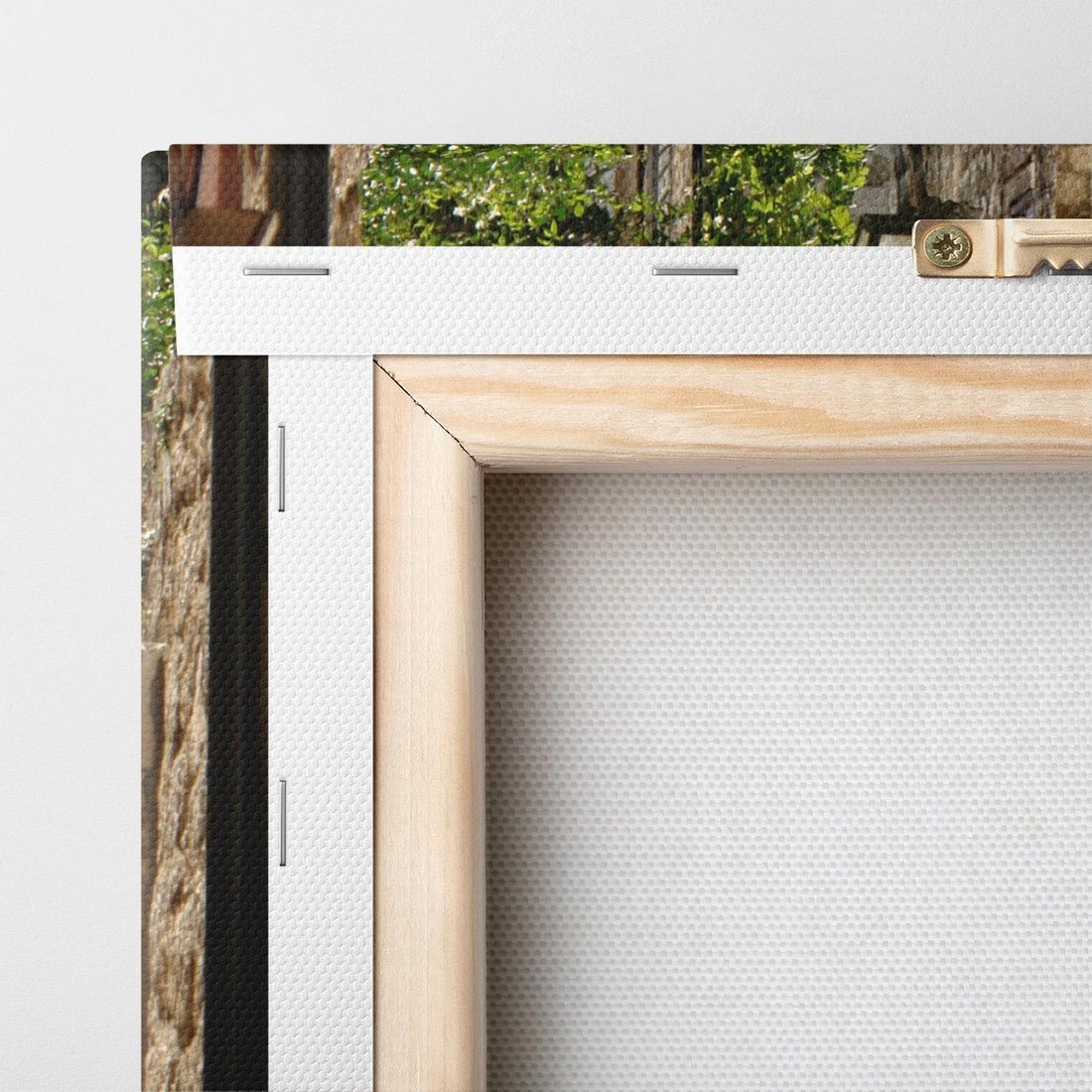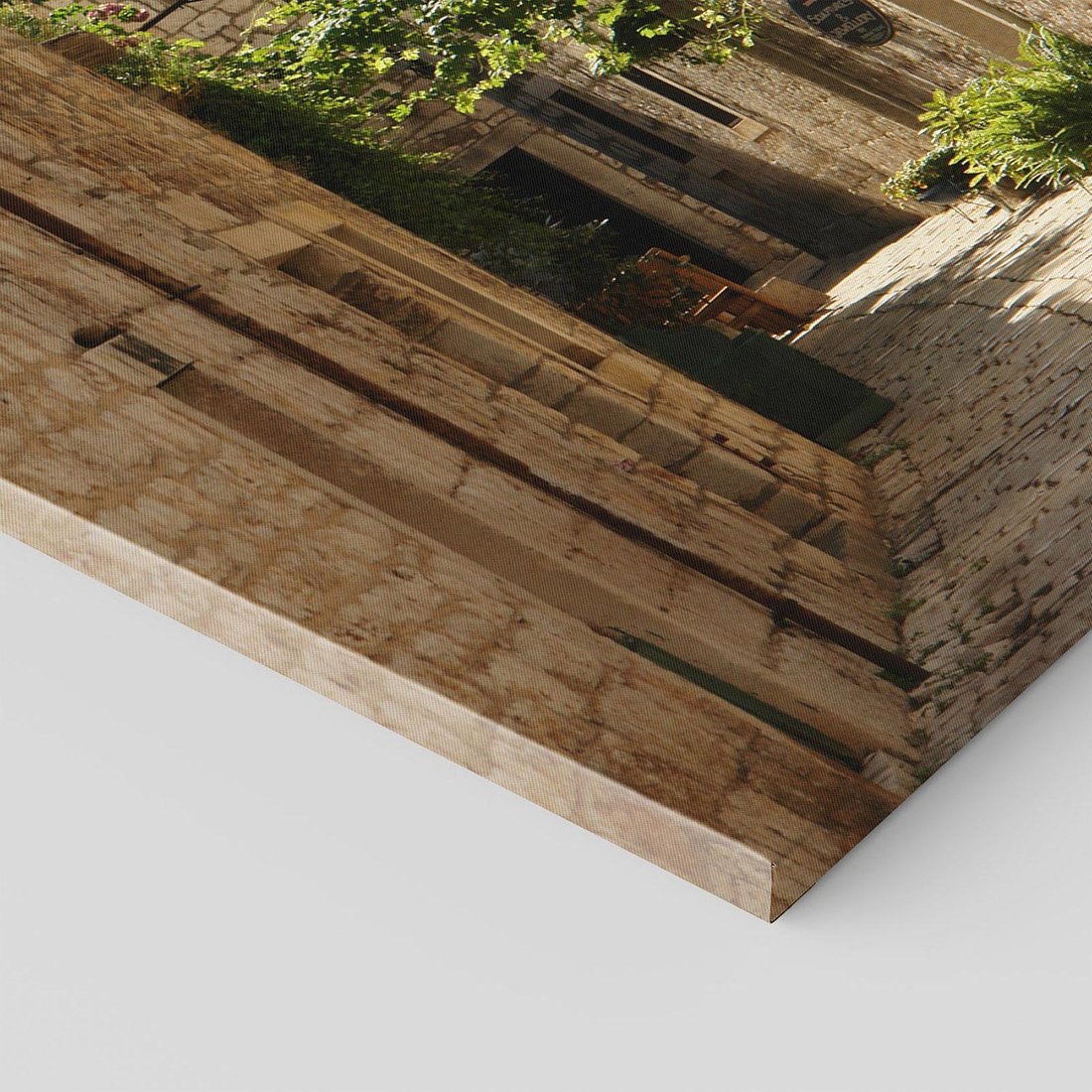 Odkryj urok Włoch dzięki temu ujmującemu obrazowi na płótnie. Przedstawia on wąską uliczkę, wypełnioną kolorowymi budynkami i rustykalnym urokiem włoskiej architektury.