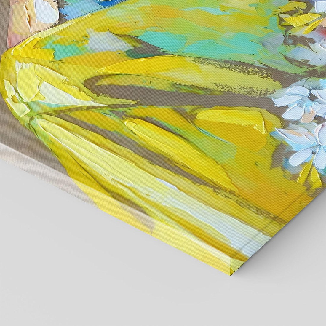Obraz na płótnie 70x100 - W Żółtej Sukience - olejny abstrakcyjny obraz, portret kobiety w żółtej sukience