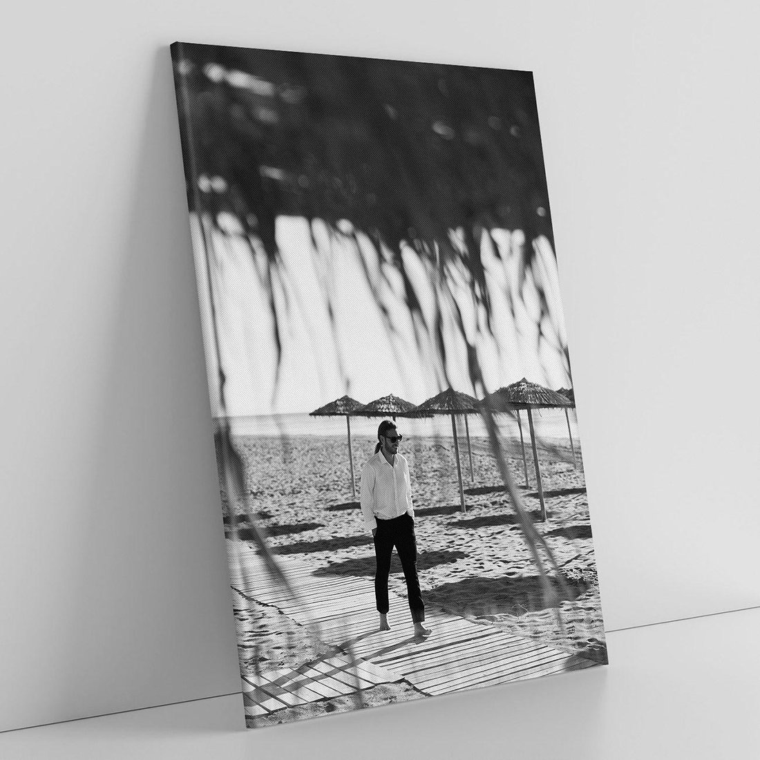 Obraz na płótnie 70x100 - Wakacyjny Spacer - czarno białe zdjecie, plaża