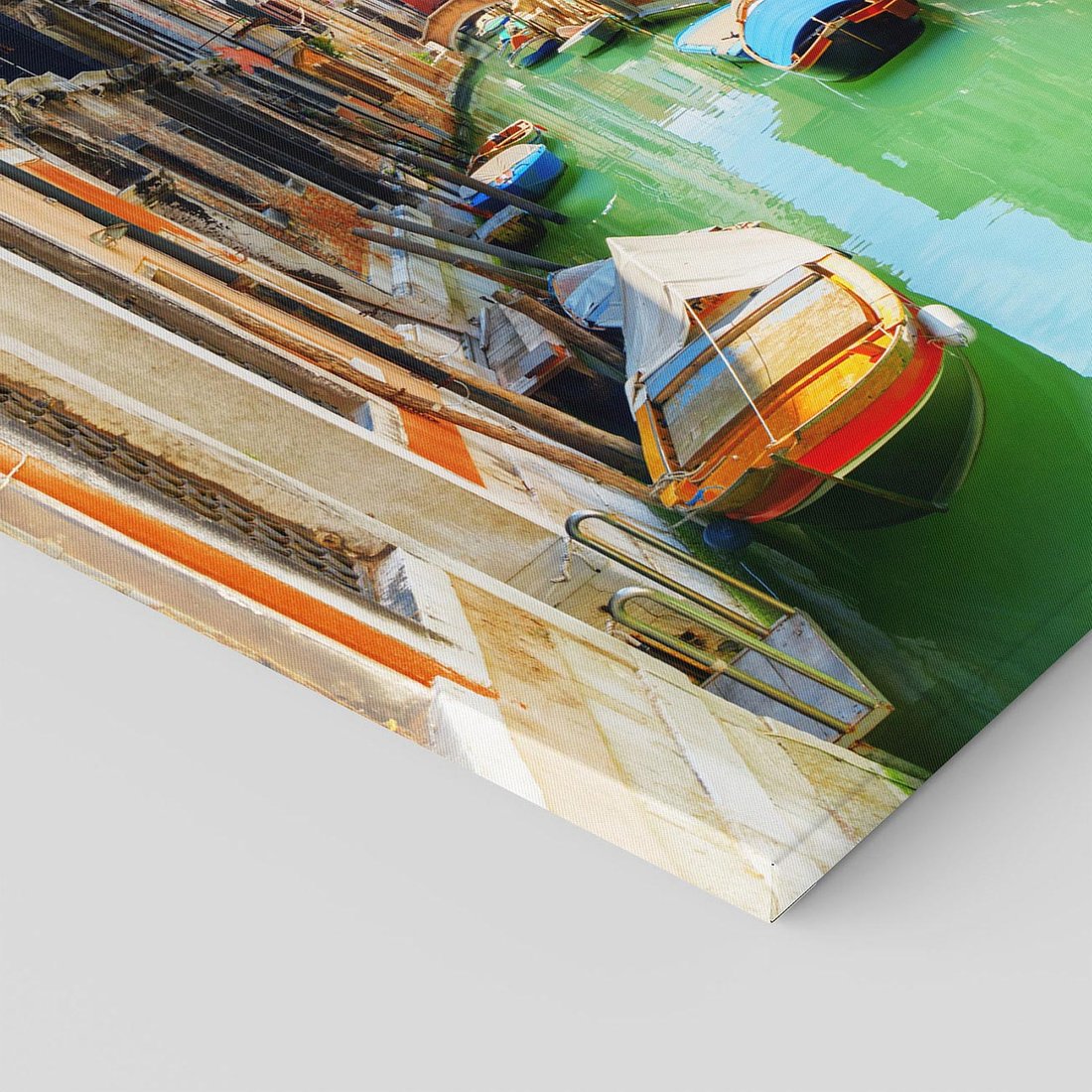 Podziwiaj romantyzm Wenecji dzięki temu malowniczemu obrazowi przedstawiającemu miasto wodnych dróg. Kolorowe domy, romantyczne mosty i atmosfera tajemnicy tworzą niepowtarzalny pejzaż. Ta kompozycja dodaje uroku i nostalgii, idealna dla miłośników Wenecji i jej romantycznego uroku.