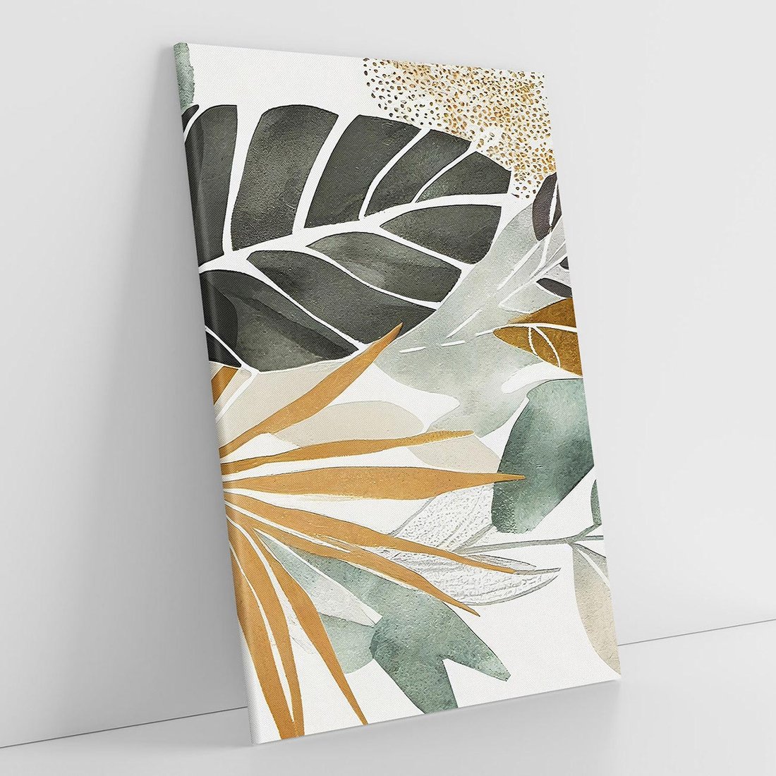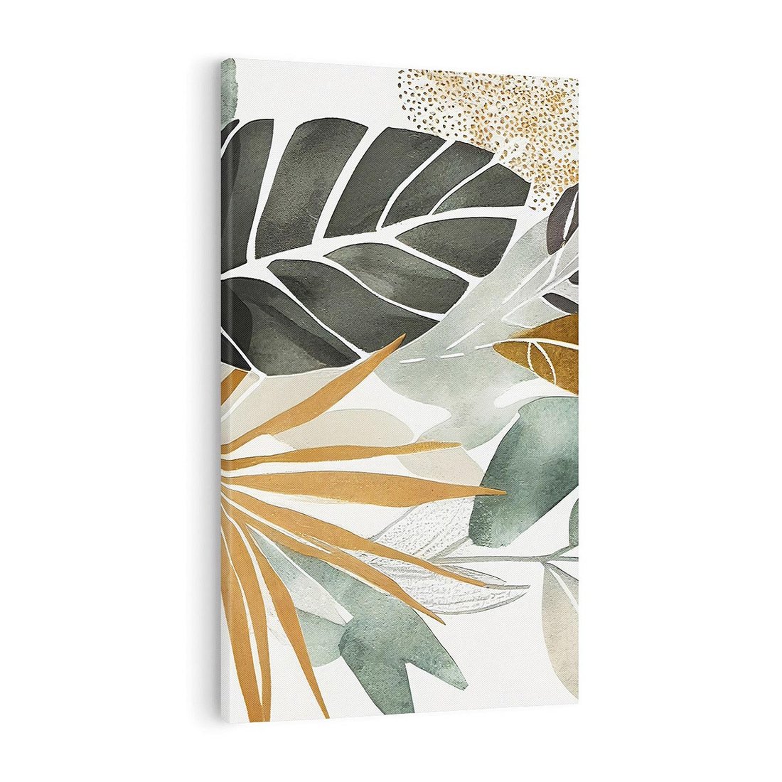 Obraz na płótnie 70x100 - Współbrzmienie wewnętrznego ja - kompozycja z tropikalnych liści, stonowane kolory
