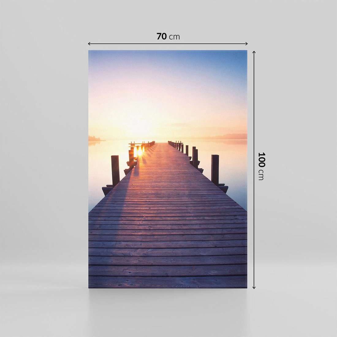 Obraz na płótnie 70x100 - Zachód słońca nad molo: Magia morza - molo, zachód słońca