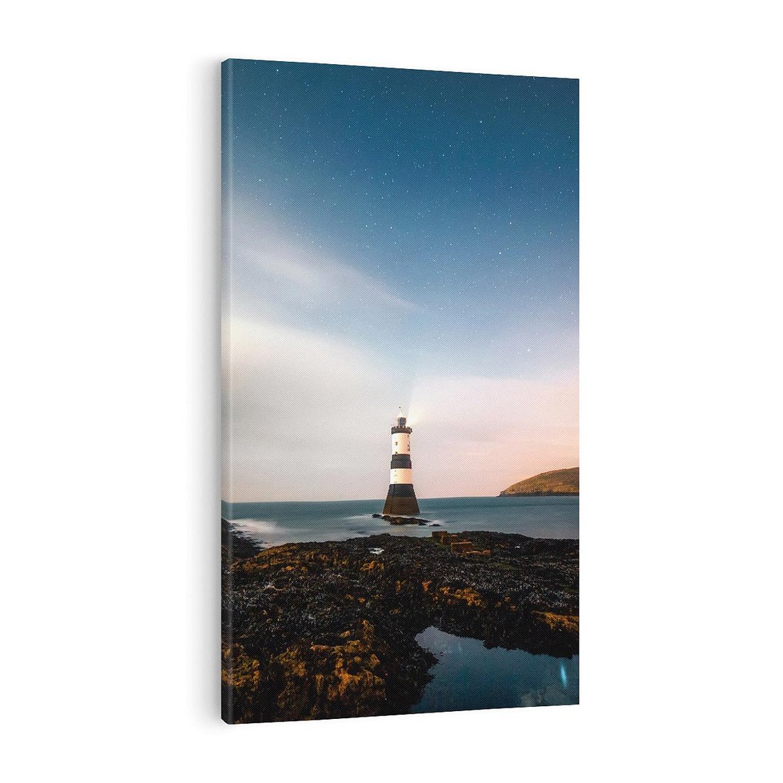 Obraz na płótnie 70x100 - Zachód słońca nad morzem: Magia plażowej scenerii - latarnia morska, morze