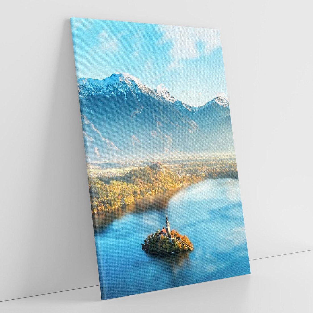 Obraz na płótnie 70x100 - Zamek pośrodku jeziora - jezioro, góry