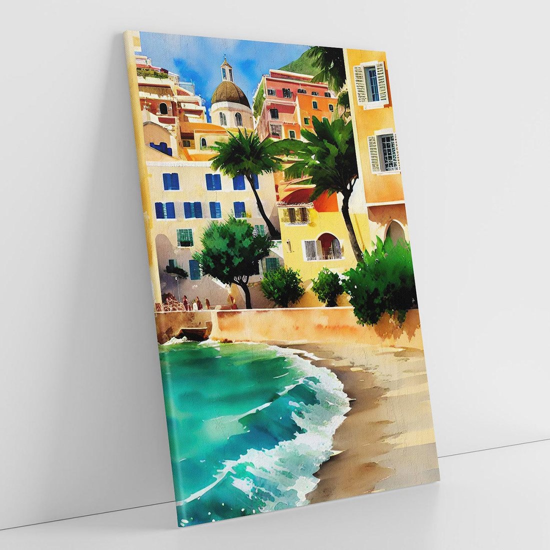 Obraz na płótnie 70x100 - Zamieszkajmy Tu - akwarela, śródziemnomorski klimat