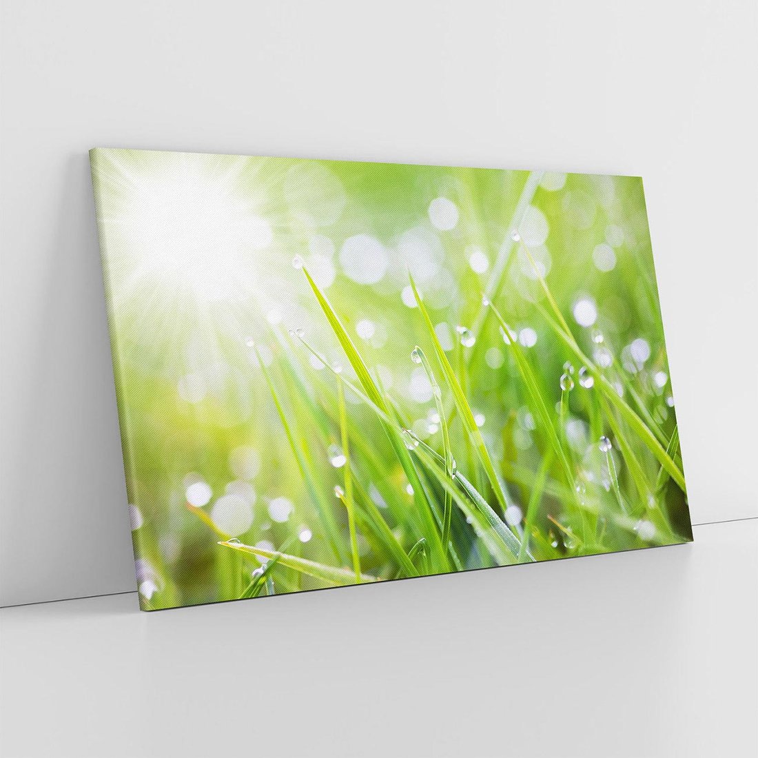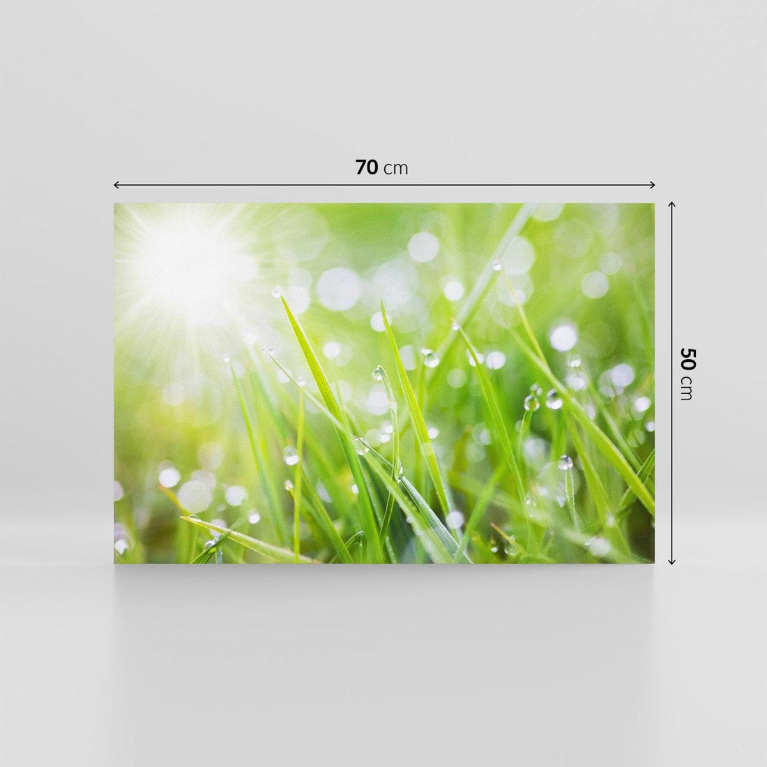 - Obraz na płótnie 70x50 - Delikatna trawa pokryta rosą