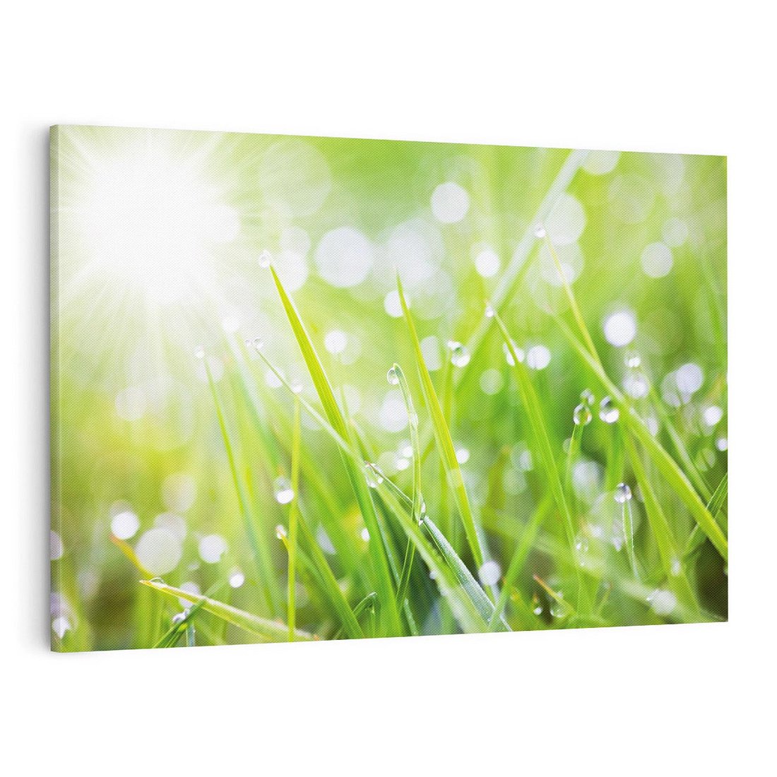 Przywołaj spokój natury do swojego wnętrza dzięki temu subtelnie pięknemu obrazowi na płótnie. Kwitnąca trawa pokryta delikatną rosą tworzy mistyczną i pełną harmonii atmosferę. Ten obraz przynosi uczucie świeżości i związku z przyrodą, idealny dla osób ceniących piękno prostych rzeczy.