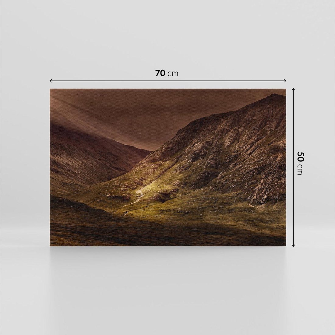 Przeniknij w piękno górskiej natury dzięki temu malowniczemu obrazowi przedstawiającemu górską scenerię. Wznoszące się szczyty, malownicze doliny i soczysta roślinność tworzą harmonijną aurę. Ten obraz dodaje świeżości i spokoju, idealny dla miłośników górskich widoków i chcących wprowadzić do swojego wnętrza naturalny klimat górskiej scenerii.