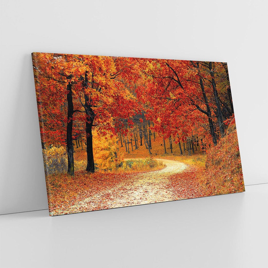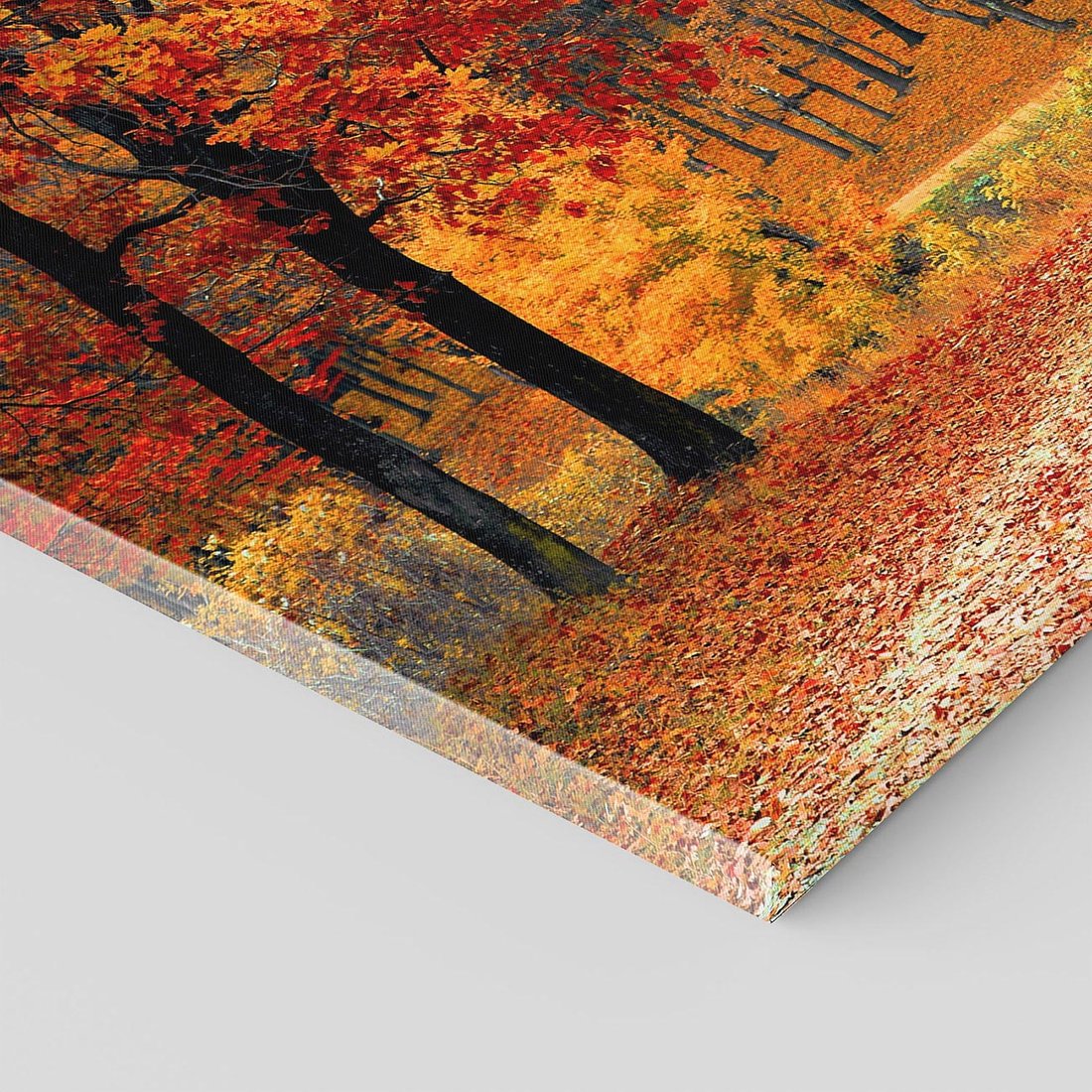Ten malowniczy obraz ukazuje las w pełnym jesiennym blasku. Drzewa oplecione kolorowymi liśćmi tworzą kompozycję, która ożywi Twoje wnętrze energią natury i pięknem. Przenieś się w świat jesiennego lasu i ciesz się harmonią i spokojem tego sezonu dzięki temu wyjątkowemu dziełu sztuki.