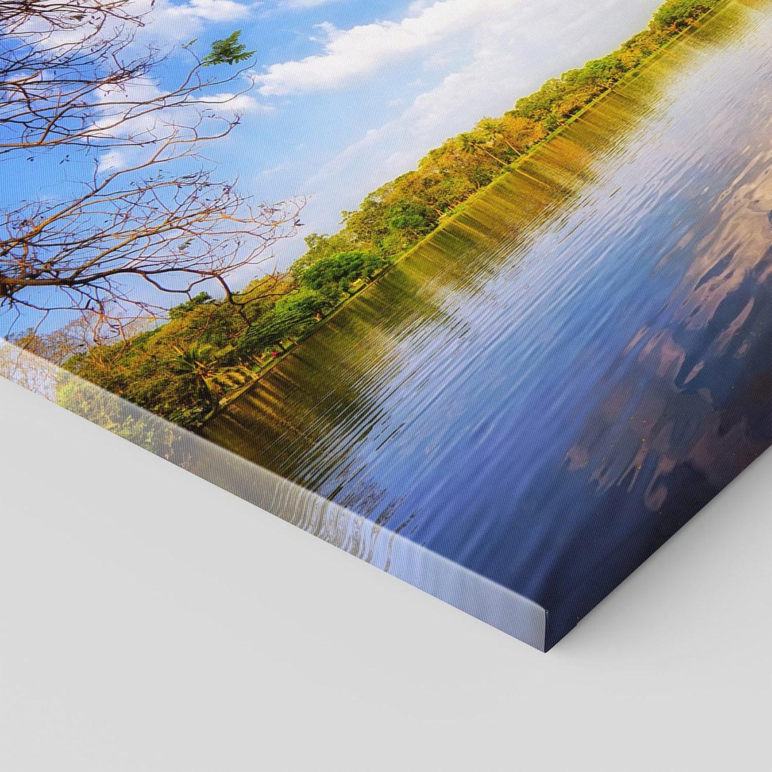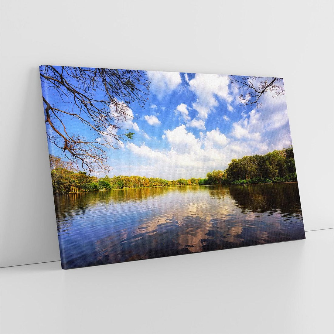 Ożyw swoje wnętrze tym malowniczym obrazem przedstawiającym jezioro otoczone lasem. Spokój wody, zieloność drzew i harmonia natury tworzą aurę ukojenia i harmonii. Ta kompozycja dodaje relaksu i spokoju, idealna dla osób pragnących wprowadzić do swojego wnętrza naturalny oazę spokoju i piękna natury.