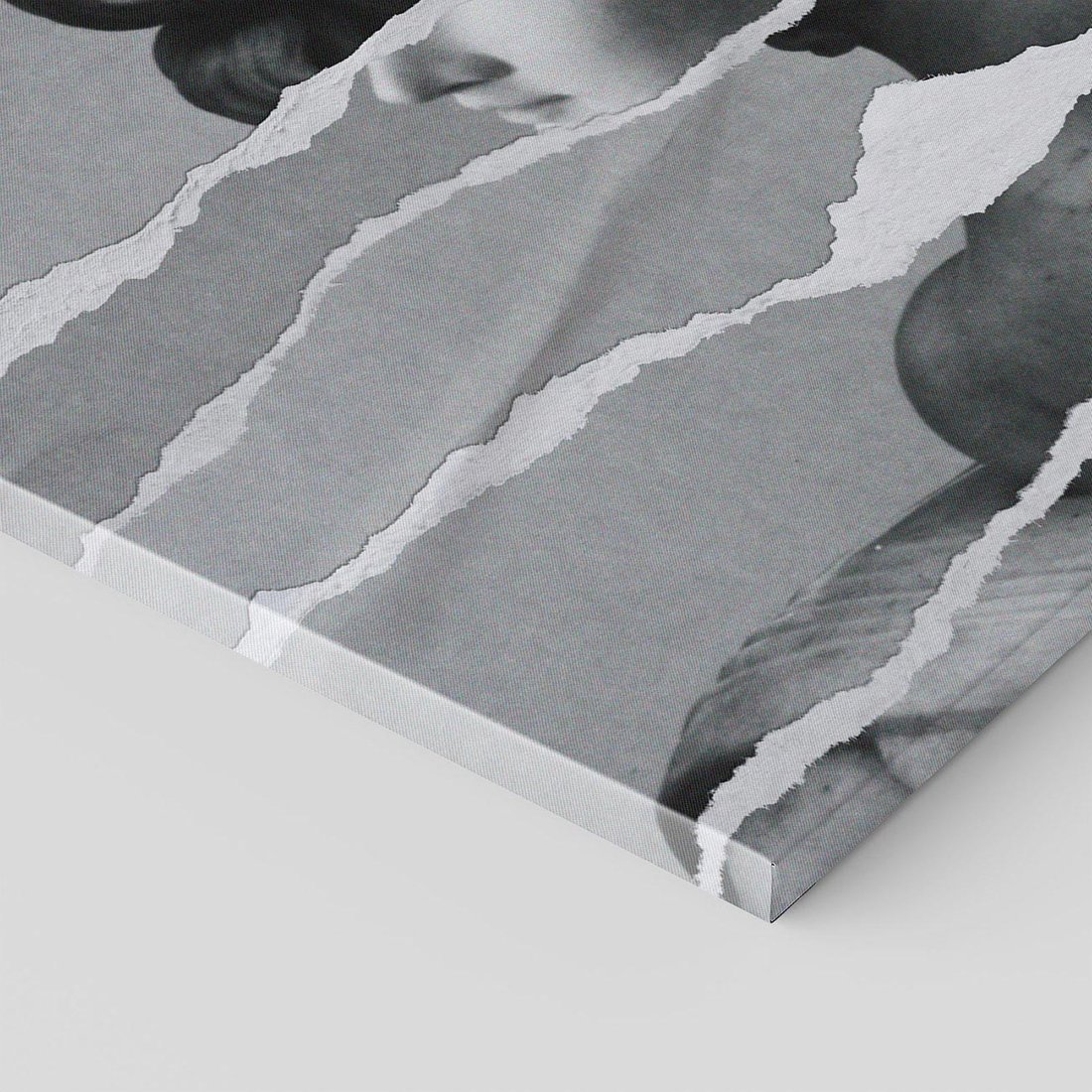 Ten unikalny obraz na płótnie łączy nowoczesność ze sztuką antyczną. Kolaż ze zdjęcia antycznej rzeźby tworzy wyjątkową i abstrakcyjną kompozycję, gdzie odcienie szarości dominują. To dzieło sztuki emanuje harmonią kontrastu między przeszłością a teraźniejszością, nadając Twojemu wnętrzu elegancki i nowoczesny wygląd.