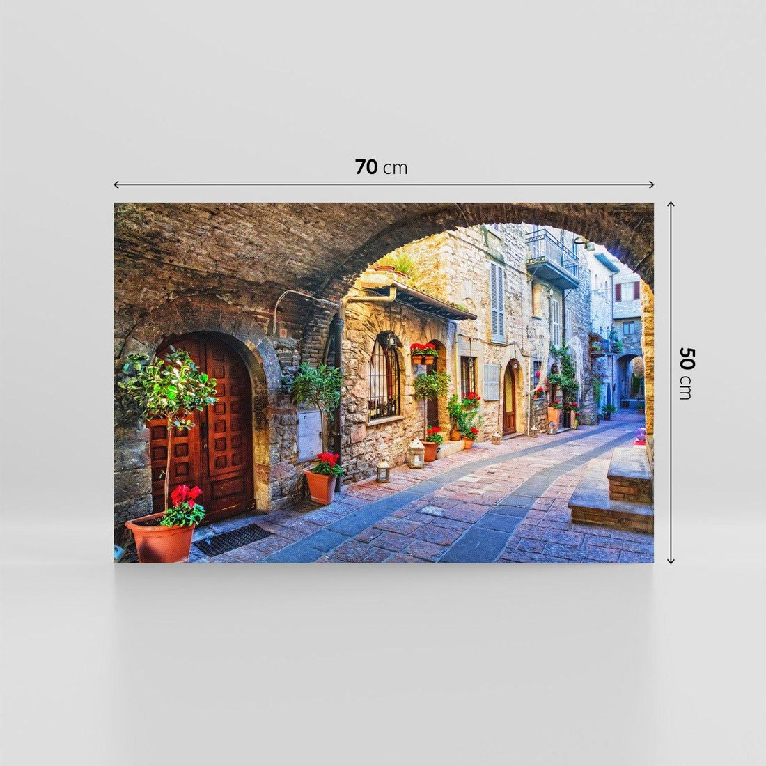 Przenieś się do urokliwego włoskiego miasta dzięki temu obrazowi przedstawiającemu malowniczą uliczkę z kaskadą kwiatów. Kolorowe fasady, kamienne uliczki i bujna roślinność tworzą niepowtarzalną atmosferę. Ten obraz dodaje włoskiego uroku i romantycznego nastroju, idealny dla miłośników podróży i piękna kwiatów.