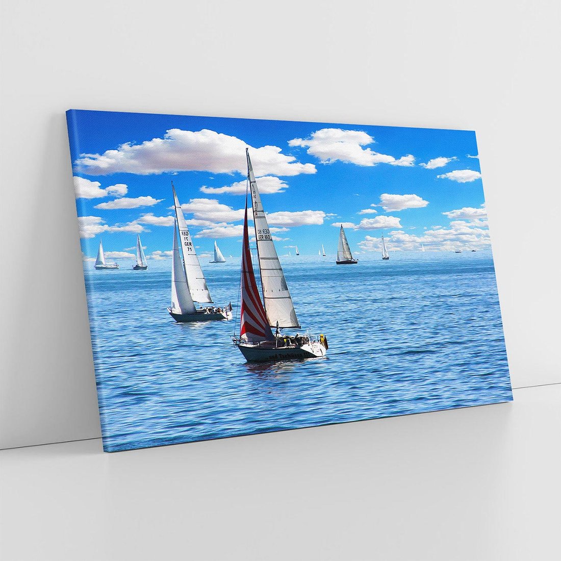 Ten malowniczy obraz przedstawia kolorowe łódki unoszące się na falach morza, które kontrastują z pięknym niebem. Ciesz się widokiem ich harmonii i dodaj nutę morskiego klimatu do swojego wnętrza tym wyjątkowym obrazem.