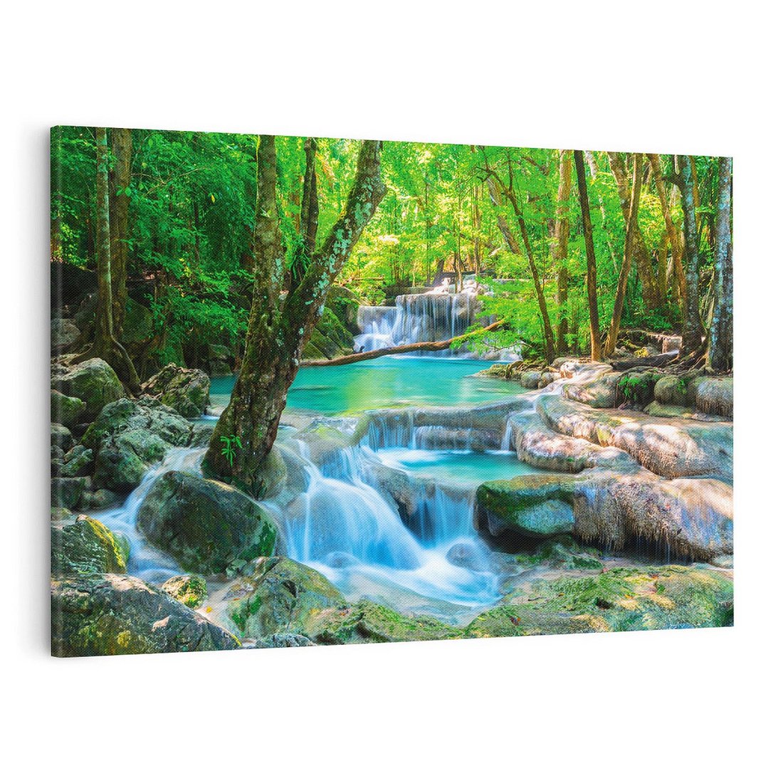 Obraz na płótnie 70x50 - Magia w lesie nad rzeką - wodospad, rzeka