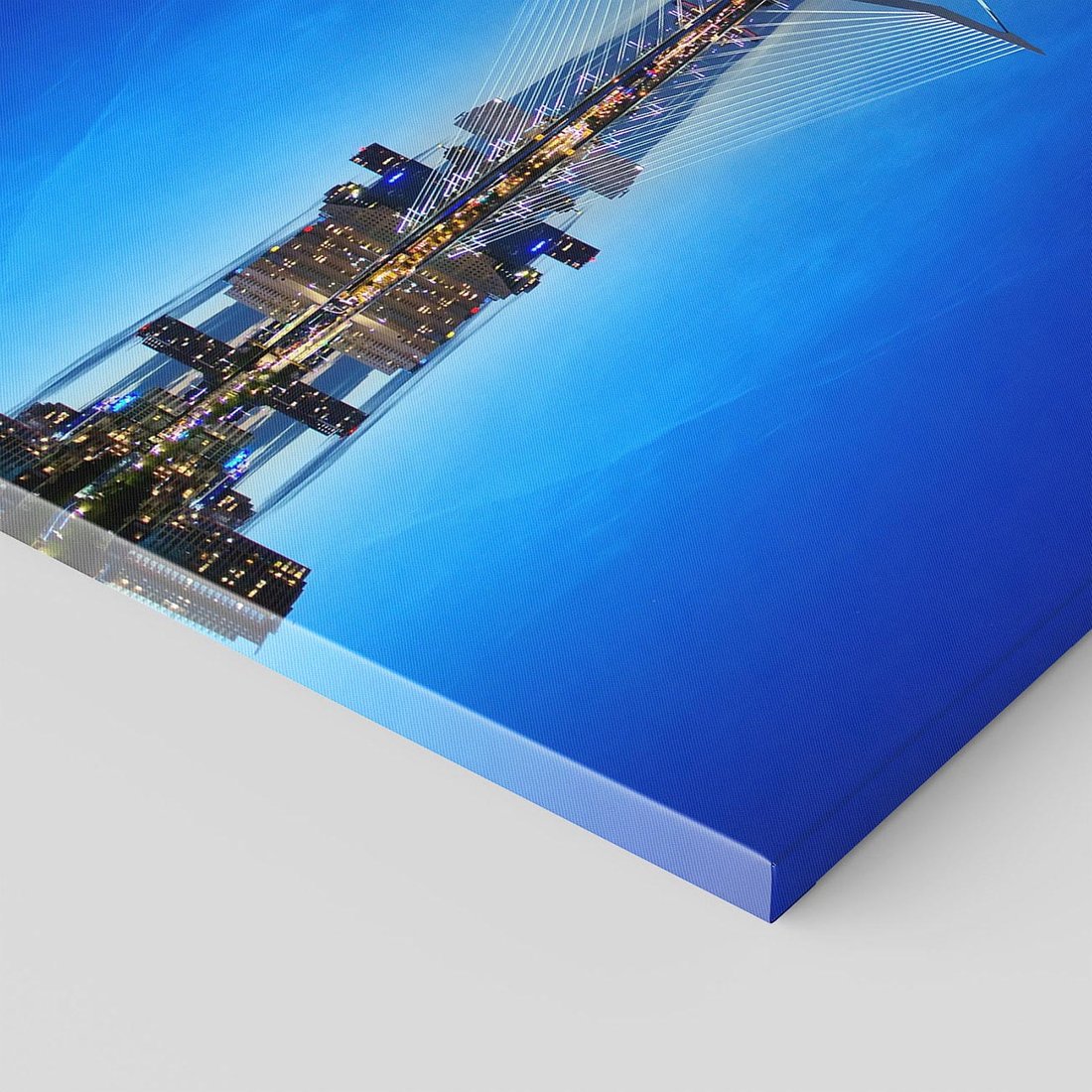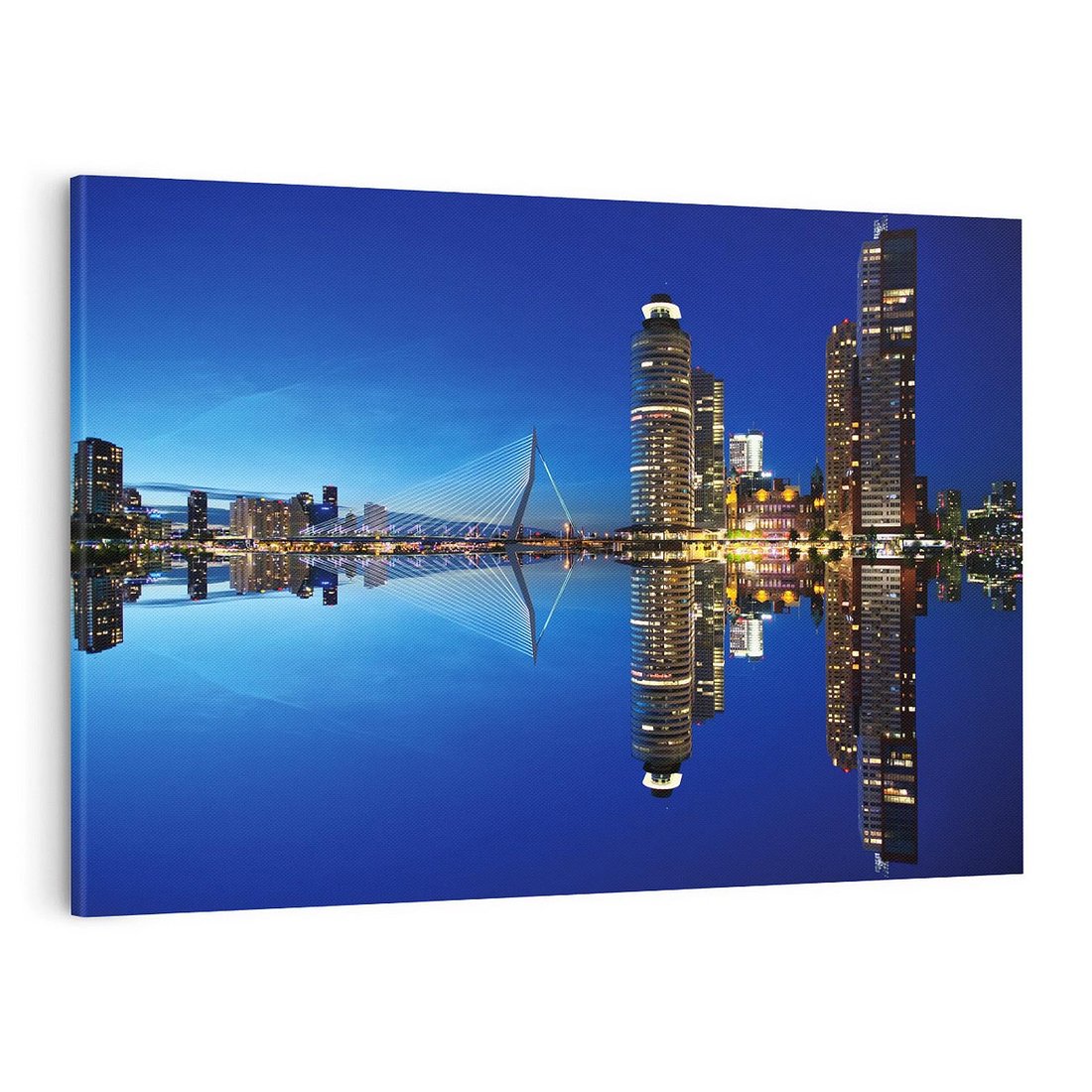 Ten fascynujący obraz przedstawia miasto oświetlone nocnym światłem, które odbija się w wodzie. Ciesz się widokiem magicznej atmosfery nocnego miasta i dodaj nutę tajemnicy i romantyzmu do swojego wnętrza tym wyjątkowym dziełem sztuki.