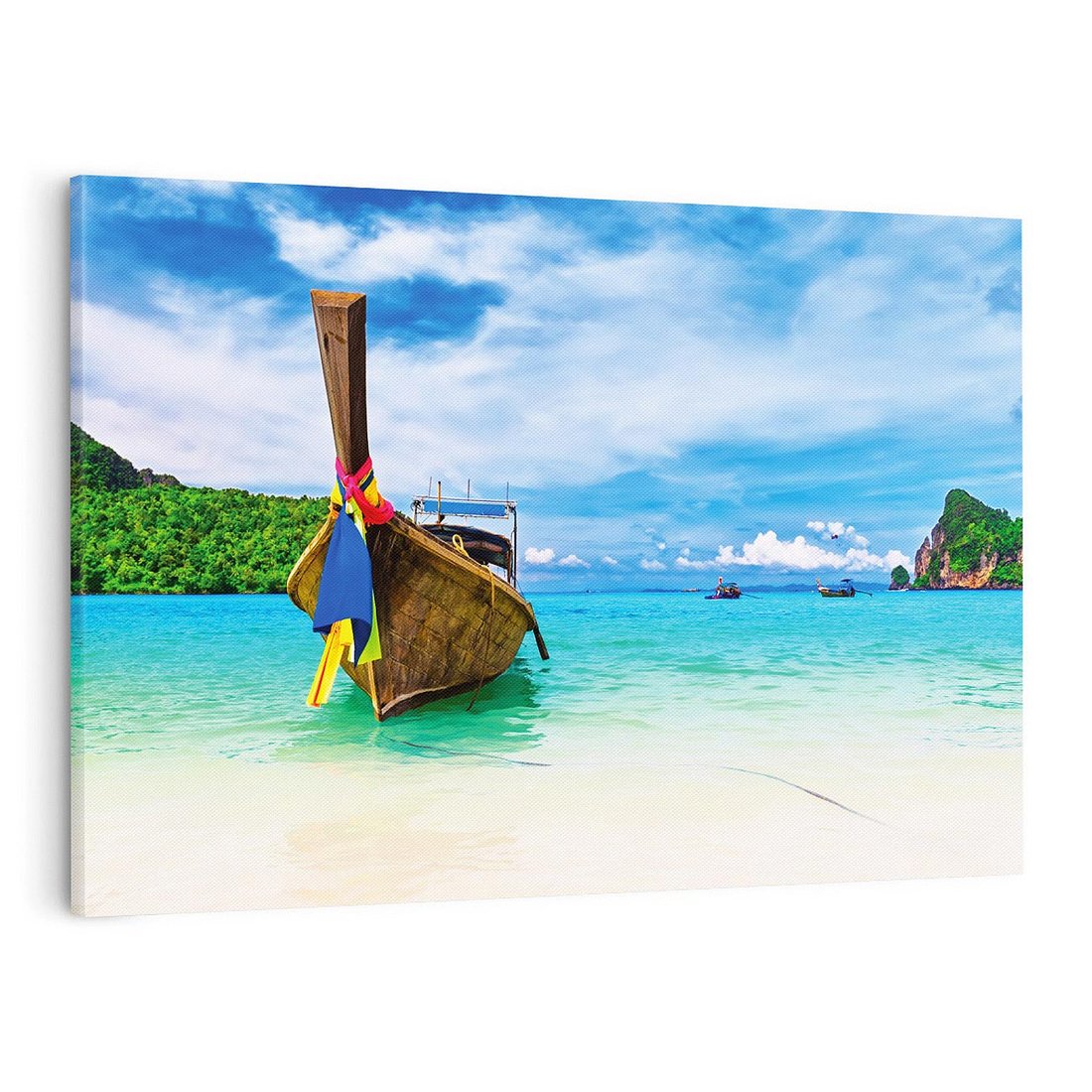 Obraz na płótnie 70x50 - Rajska Plaża Tajlandii: Spotkanie z Naturą - Tajlandia, łódź