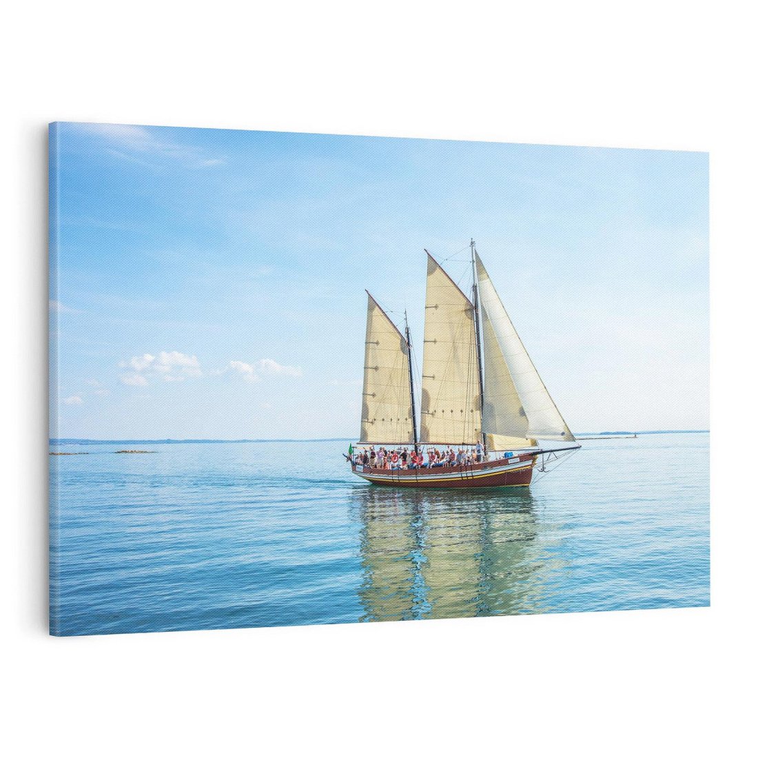 Ten ujmujący obraz przedstawia majestatyczny statek żaglowy unoszący się na falach morza. Ciesz się widokiem jego elegancji i dodaj nutę morskiej przygody do swojego wnętrza dzięki temu wyjątkowemu dziełu sztuki.