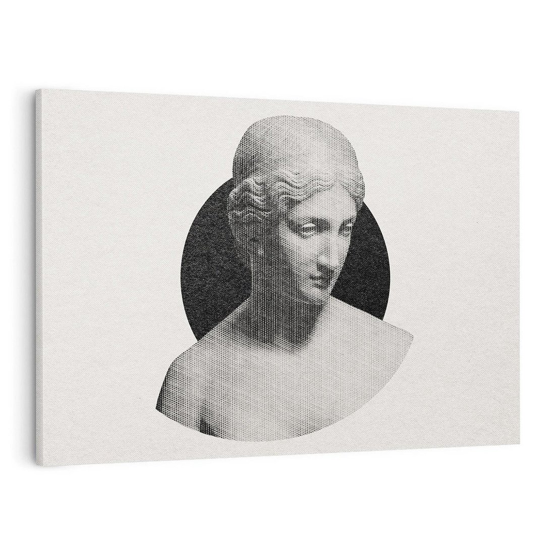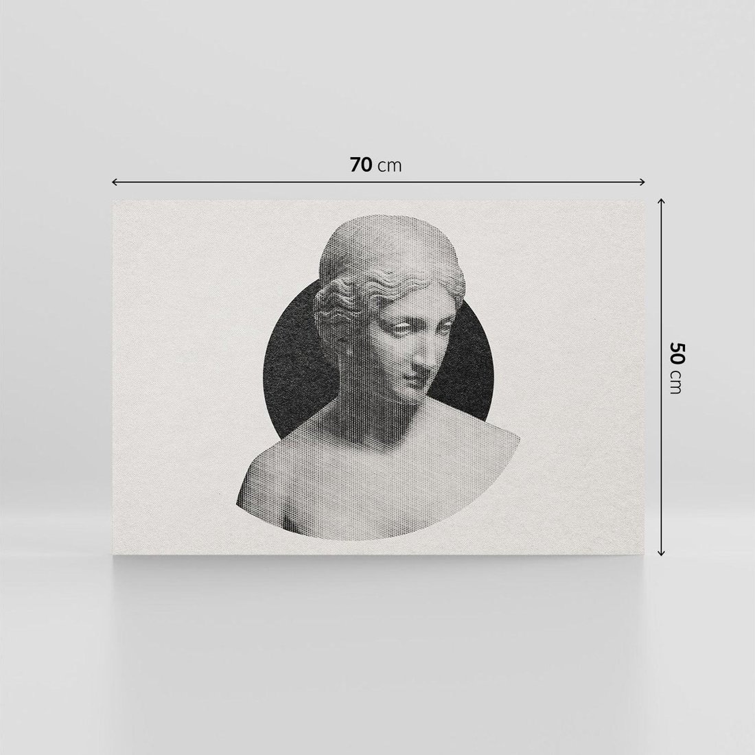 Wybierz ten graficzny kolaż, aby cieszyć się antyczną rzeźbą kobiety w nowoczesnym wydaniu. Czarno-biały obraz dodaje elegancji, a sztuka na płótnie wciąż emanuje magią dawnych czasów.