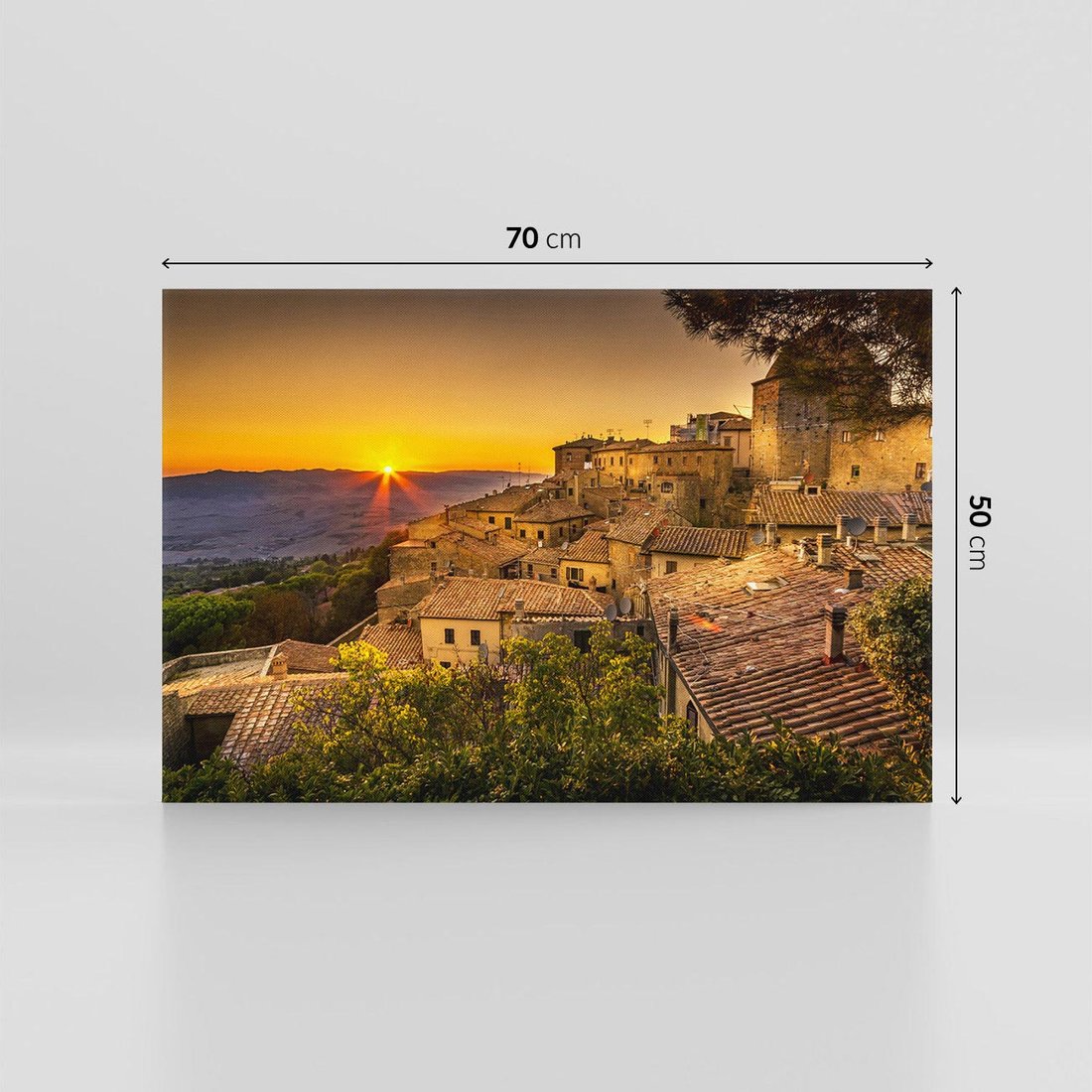 Ożyw swoje wnętrze tym malowniczym obrazem przedstawiającym Toskanię. Złociste pola, wzgórza i malownicze krajobrazy tworzą romantyczną atmosferę. Ta kompozycja dodaje uroku i włoskiego stylu, idealna dla miłośników włoskiej kultury i sielskiego uroku toskańskiej przyrody.