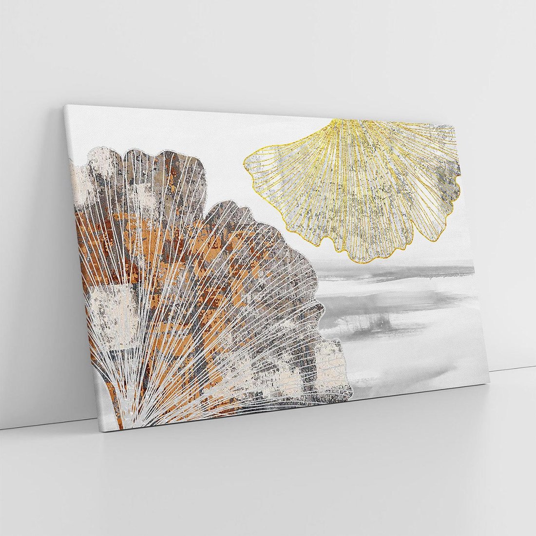 Zachwyć się subtelnym obrazem, który ukazuje piękno liści miłorzębu w odcieniach szarości. Złote kontury dodają mu delikatnego blasku. Tekstura i szarości nadają dziełu artystycznego charakteru. To dzieło sztuki stworzone dla miłośników natury i minimalistycznej estetyki, pragnących wprowadzić spokój i harmonię do swoich wnętrz. Doskonały akcent dla tych, którzy cenią delikatną elegancję.