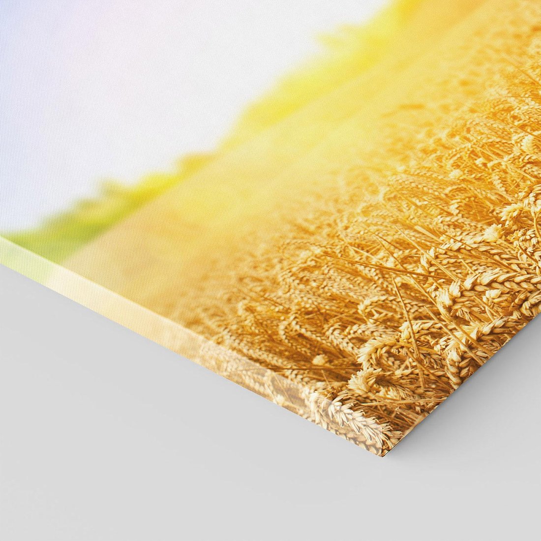 Przenieś się na malownicze pole pszenicy, gdzie złociste kłosy falują na wietrze na tym bujnym obrazie. Jego żółte odcienie i tekstura tworzą aurę obfitości i naturalnej piękności. Ta kompozycja dodaje ciepła i harmonii, idealna dla miłośników wiejskich pejzaży i przyrody.