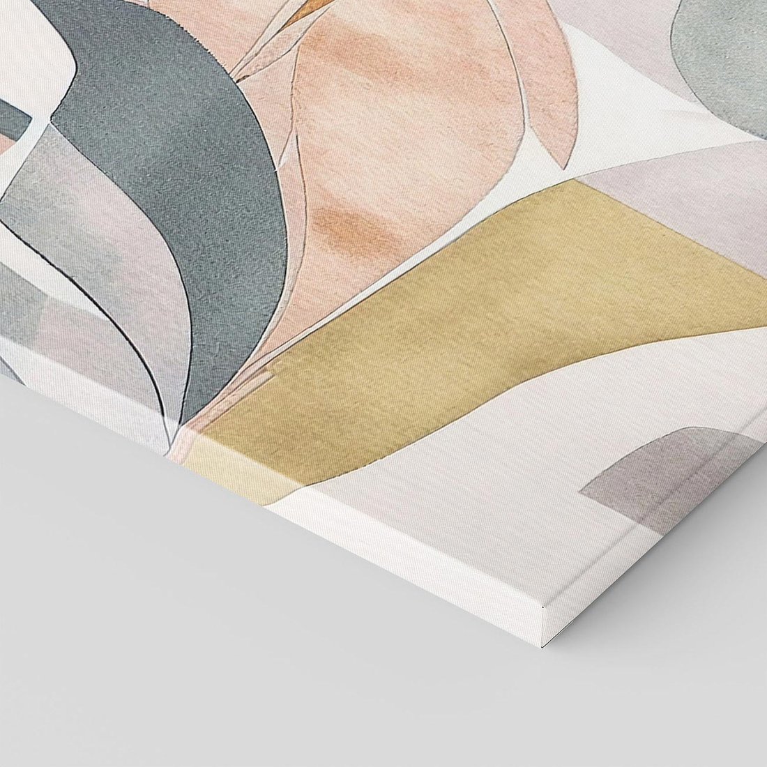 To unikatowy obraz w pastelowych akwarelach, gdzie kształty układają się w abstrakcyjne kompozycje. Odcienie beżu, turkusu i szarości tworzą harmonijną grę kolorów i form. To artystyczne dzieło dodaje przestrzeni lekkości i subtelnego piękna, zachęcając do odkrywania różnorodnych interpretacji i emocji.