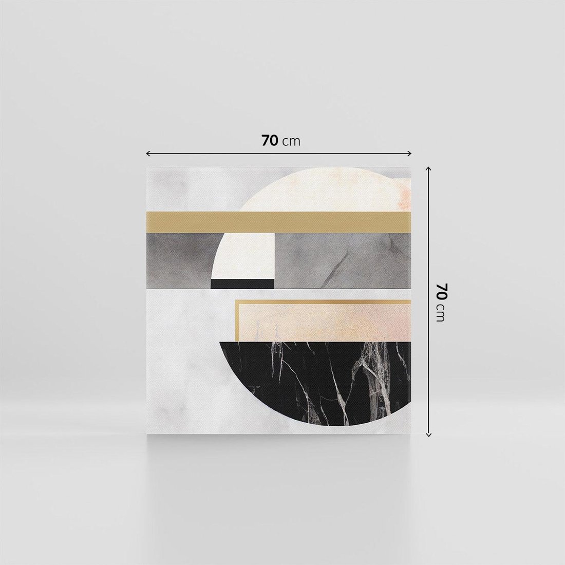 Unikalny obraz, który w nowoczesny sposób łączy geometrię, koła i tekstury szarego marmuru. Subtelne pastele w połączeniu z białymi i czarnymi formami tworzą harmonijną kompozycję, emanującą elegancją i spokojem. To wyjątkowe dzieło sztuki dodaje przestrzeni nowoczesności, zachęcając do odkrywania estetycznych detali.