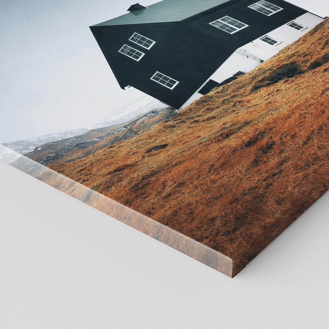 Przenieś się do skandynawskiego domku dzięki obrazowi. Poczuj ciepło i przytulność, jakie wniesie ta malownicza kompozycja do Twojego wnętrza.
