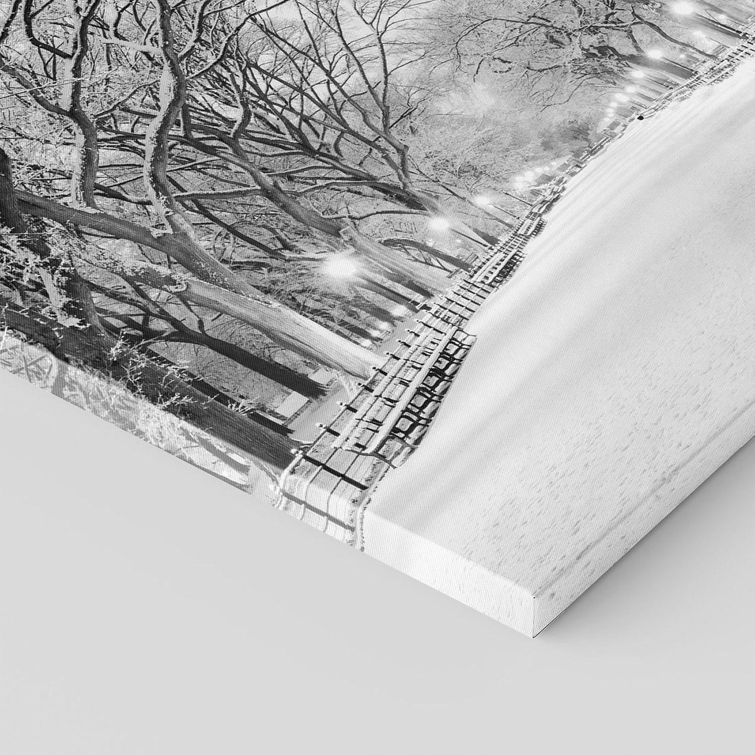 Odkryj urok zimy dzięki temu malowniczemu obrazowi przedstawiającemu park pełen drzew. Białe pejzaże, gałęzie pokryte śniegiem i spokojna atmosfera tworzą nastrojowy obraz. Ta kompozycja dodaje harmonii i uroku sezonowego krajobrazu, idealna dla osób pragnących odnaleźć piękno w zimowej ciszy i naturze.