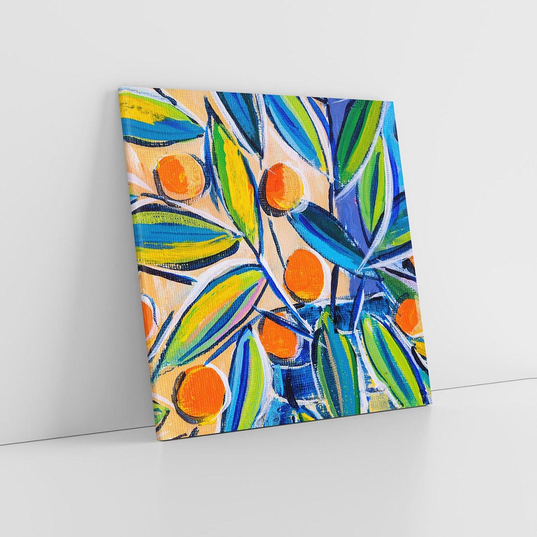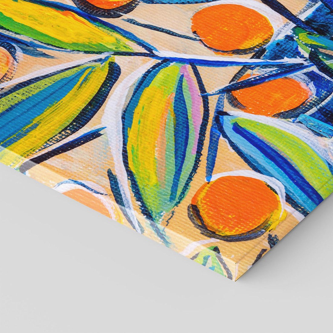 Energiczne mandarynki i pomarańcze za sprawą artystycznego pędzla łączą się na płótnie, dodając Twojej kuchni nowoczesnego i energetycznego akcentu. Sztuka gotowa, by zainspirować Twój dom.