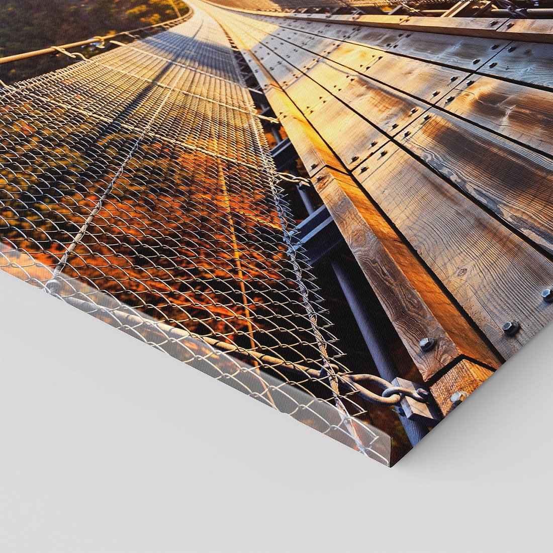 Ożyw swoje wnętrze tym uroczym obrazem przedstawiającym drewniany most w górach. Malownicze otoczenie, rustykalny urok i harmonia natury tworzą niezapomnianą aurę. Ta kompozycja dodaje przytulności i przyjemności, idealna dla miłośników przyrody i pragnących wprowadzić górski klimat do swojego wnętrza.