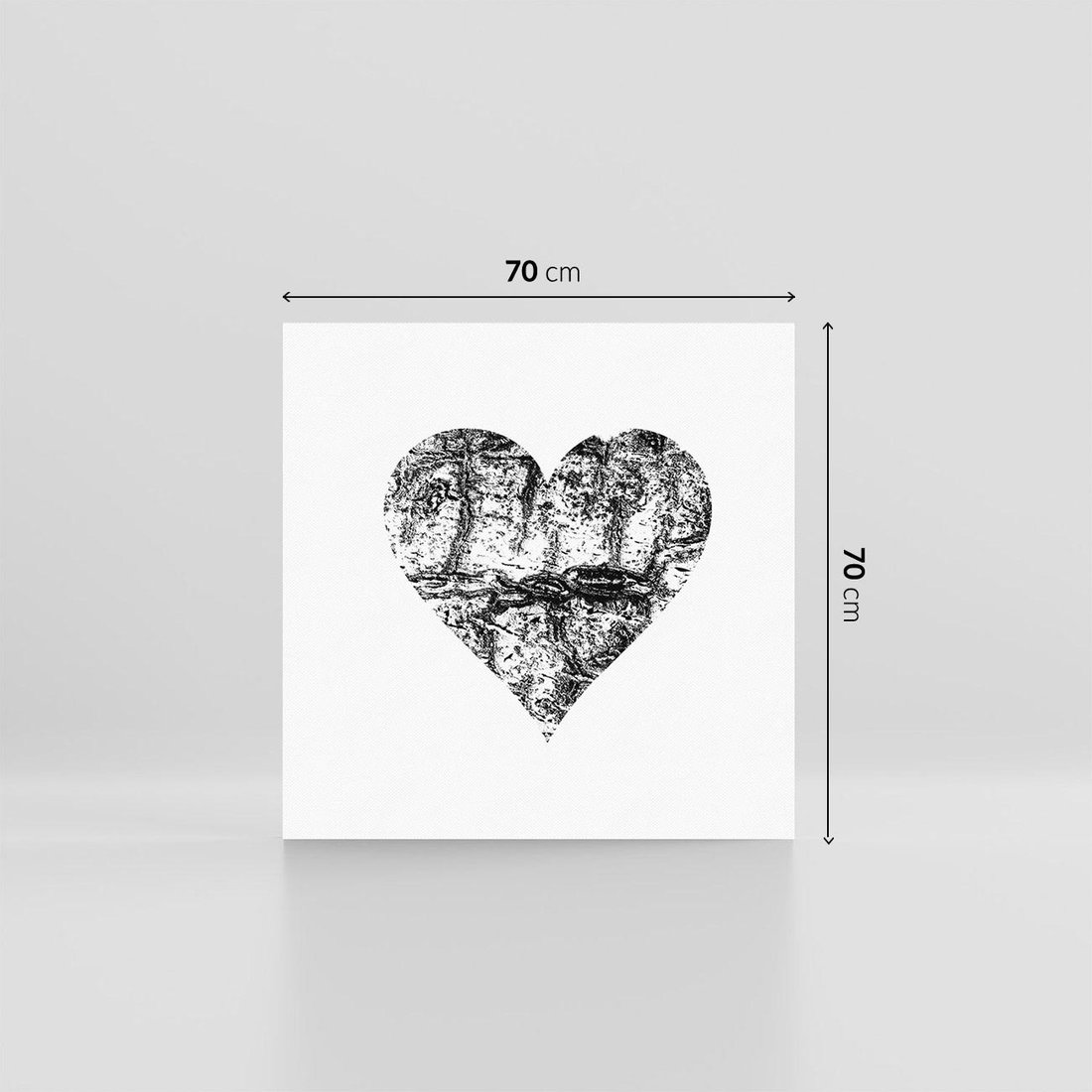 Obraz na płótnie 70x70 - Drzewo Serca - czarne serce, tekstura jak kora drzewa
