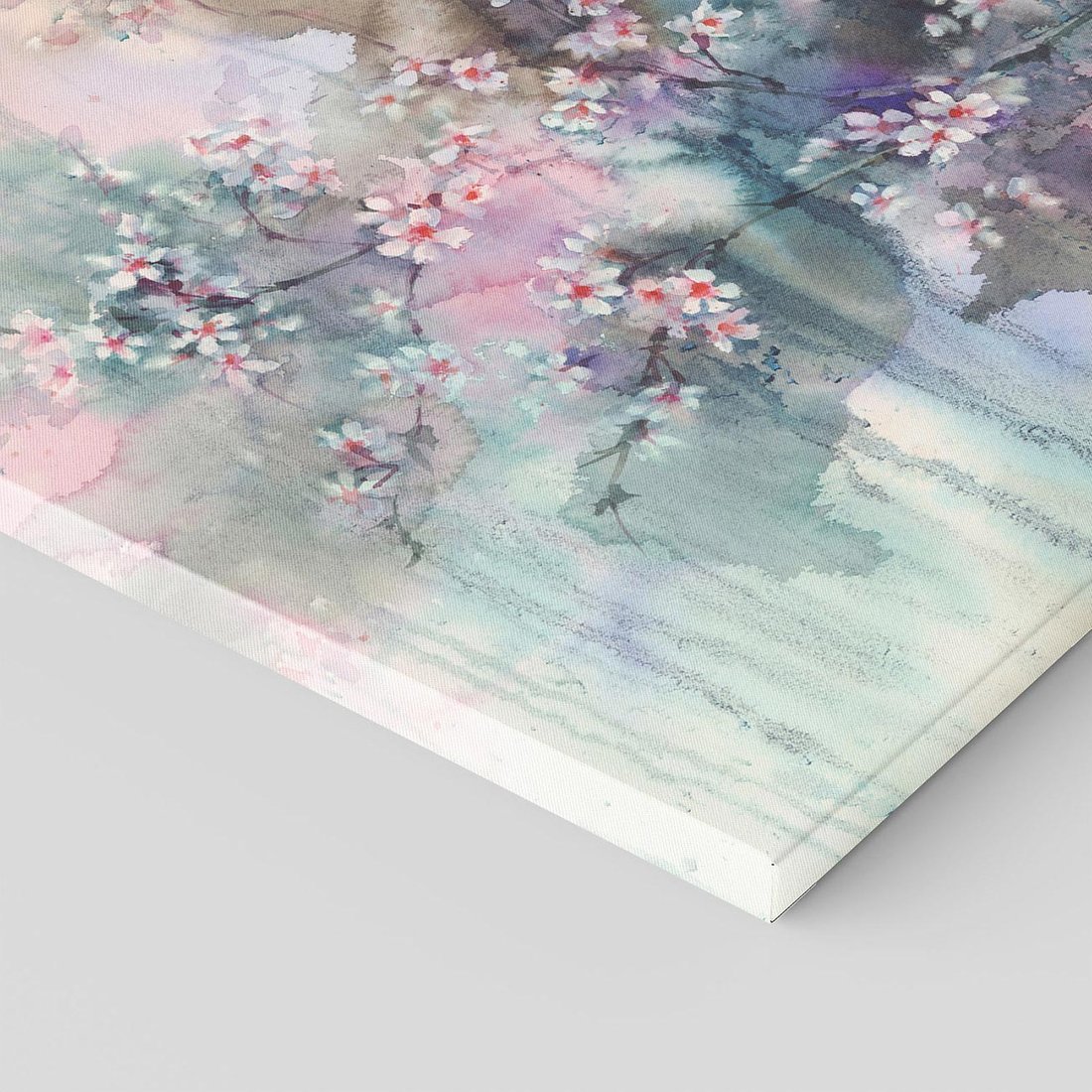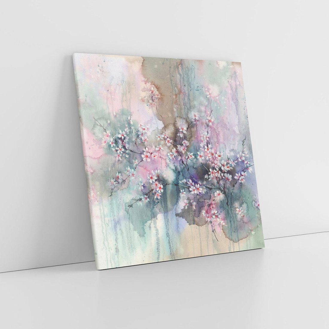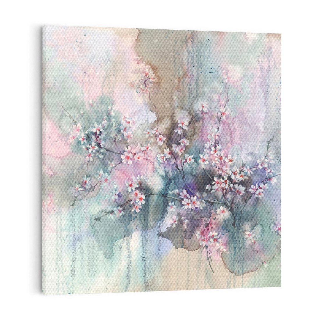 Obraz na płótnie 70x70 - Efemeryczne Kwitnienie Drzew - akwarela, rozmyte pastelowe tłó