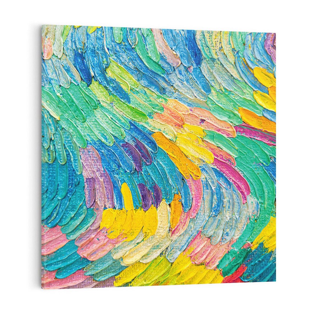 Obraz na płótnie 70x70 - Egzotyczne Pióra - abstrakcyjne dzieło, farby olejne