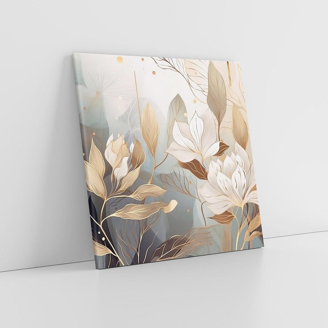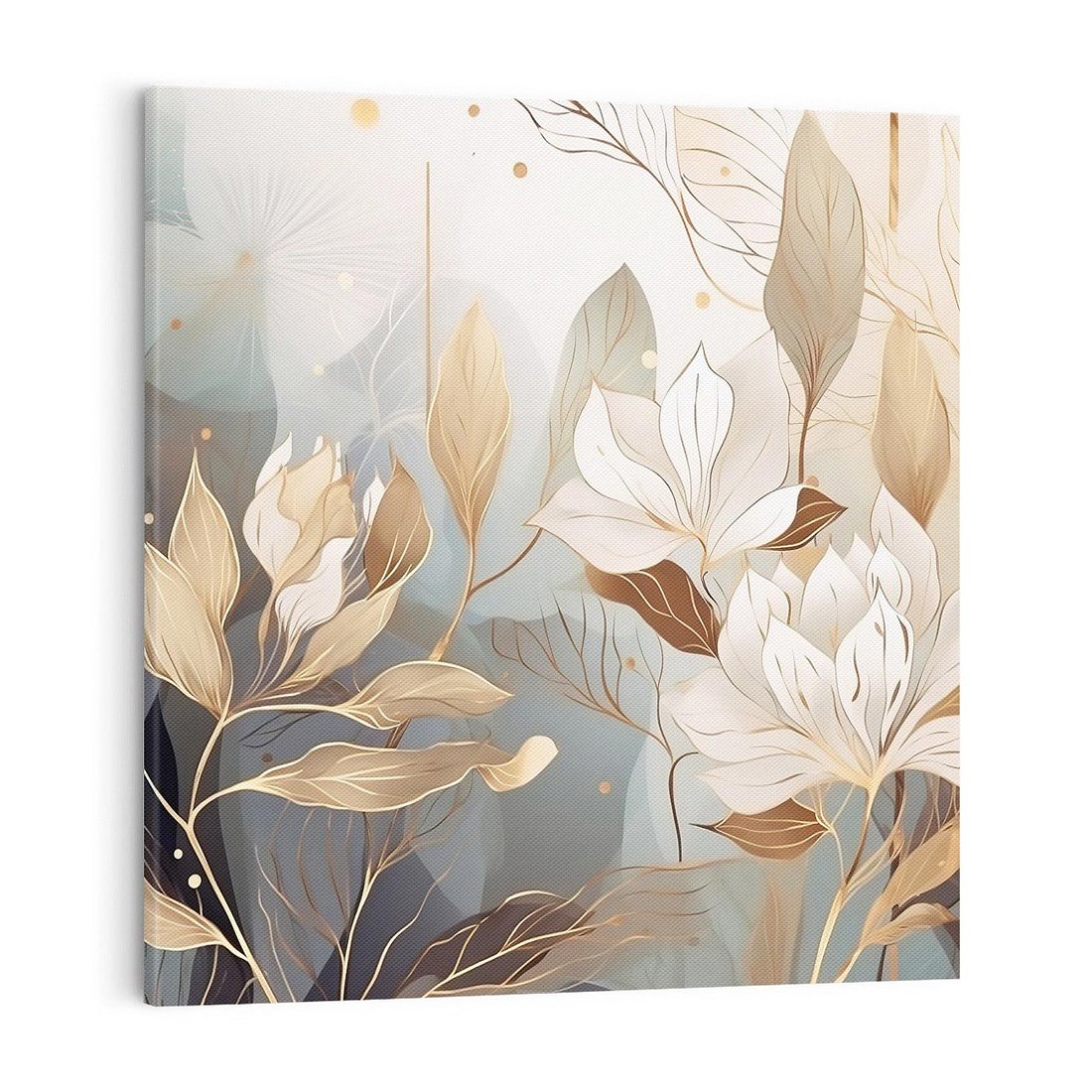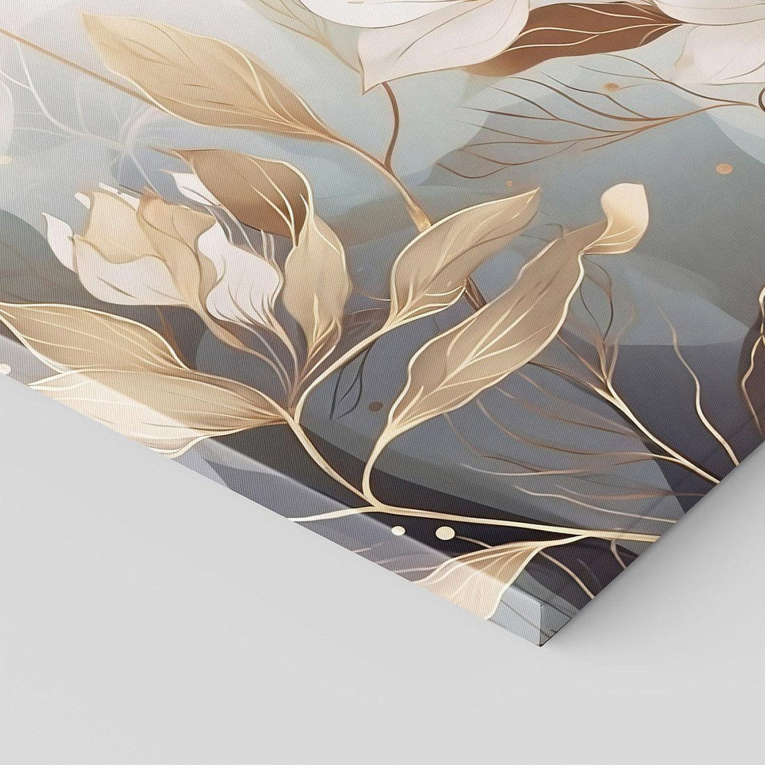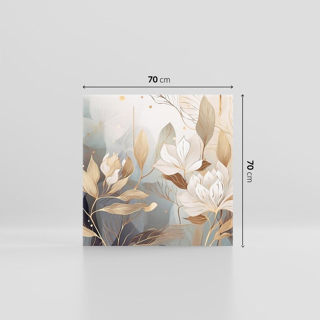 Ta nowoczesna grafika przedstawia złote kwiaty, które rozkwitają w blasku światła. Ich piękno i elegancja doskonale pasują do wnętrz glamour, dodając im wyjątkowego charakteru. To artystyczne dzieło sztuki wprowadza luksusowy akcent do Twojego wnętrza, zachwycając oryginalnością i złotym blaskiem.