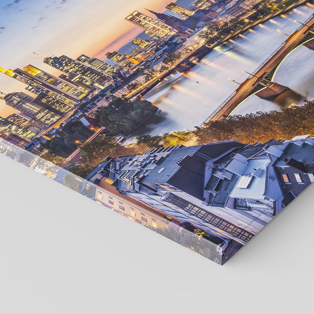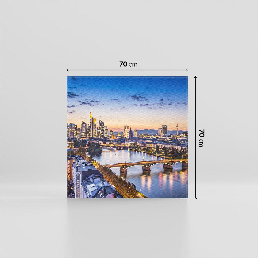 Ten interesujący obraz na płótnie przedstawia Frankfurt nad Menem - niemieckie miasto, w którym spotykają się tradycja i nowoczesność. Jego ikoniczne budynki, rzeka i dynamiczne otoczenie oddają ducha tego fascynującego miejsca. Dodaj elegancji i europejskiego stylu do swojego wnętrza.