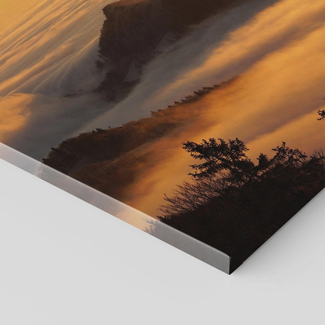 Przenieś się w magiczny świat górskiego lasu dzięki temu uroczemu obrazowi. Drzewa, które gubią się w górskiej scenerii, tworzą mistyczną atmosferę. Ta kompozycja dodaje spokoju i harmonii natury, idealna dla miłośników górskich krajobrazów i piękna lasów.
