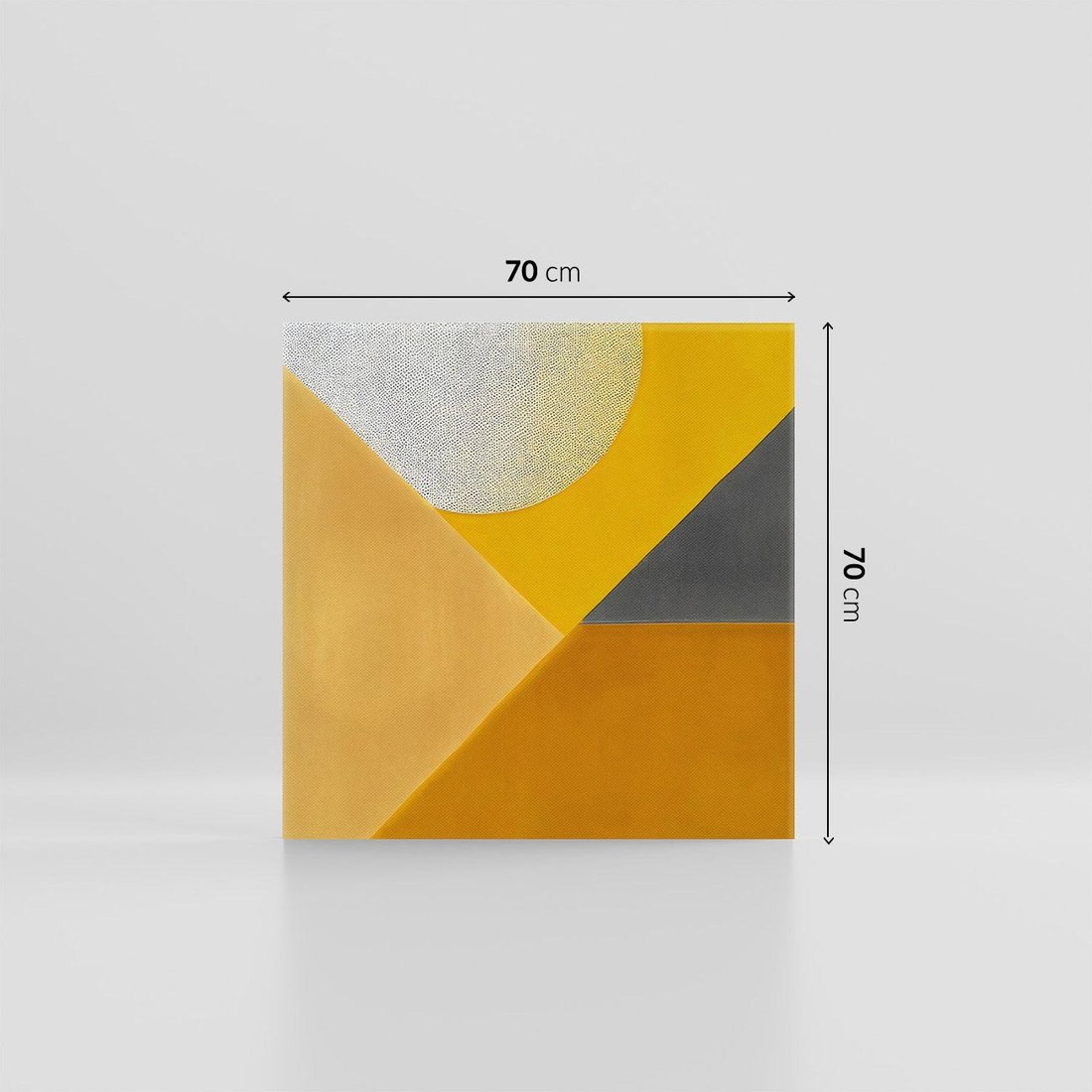 Zanurz się w intensywnych ciepłych kolorach tego obrazu, gdzie dominuje słoneczny żółty. Geometryczny podział płótna tworzy dynamiczną kompozycję kształtów. To dzieło sztuki w stylu nowoczesnym, stworzone dla miłośników ekspresyjnej estetyki i artystycznej wyrazistości. Doskonały akcent dla tych, którzy pragną wprowadzić do swoich wnętrz energię i wyrazistą ekspresję.