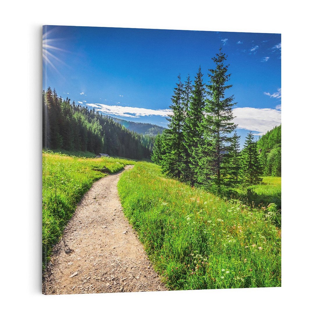 Obraz na płótnie 70x70 - Harmonia natury - góry, łąka