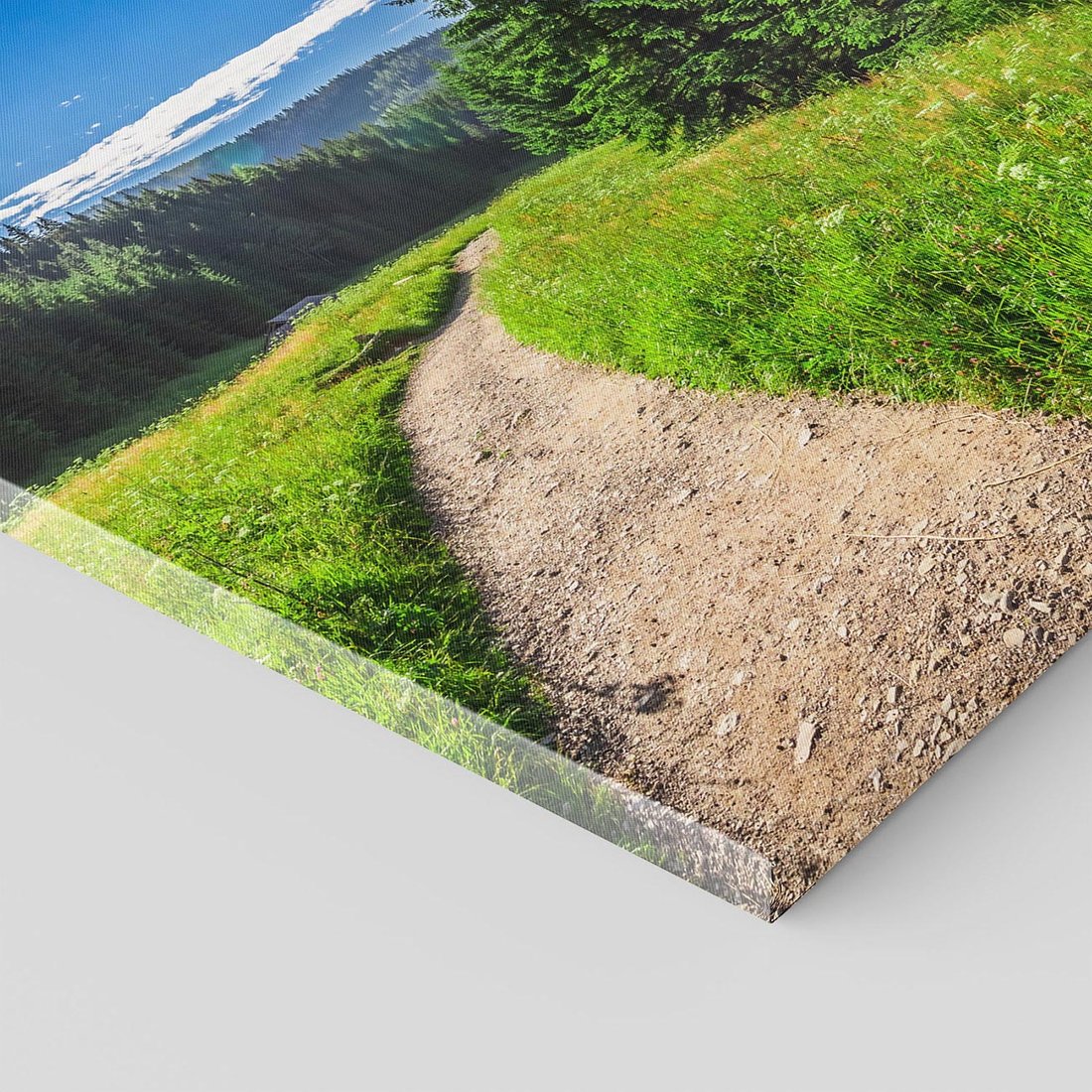 Odkryj urok górskiej łąki dzięki temu malowniczemu obrazowi przedstawiającemu góry i bujną roślinność. Soczysta zieleń, kolorowe kwiaty i rozległe widoki tworzą harmonijną atmosferę. Ta kompozycja dodaje spokoju i bliskości natury, idealna dla osób pragnących poczuć siłę i harmonię przyrody w swoim wnętrzu.