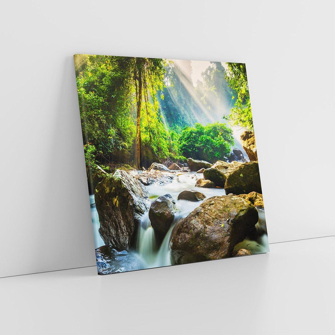 - Obraz na płótnie 70x70 - Idylliczny strumyk w urokliwym lesie