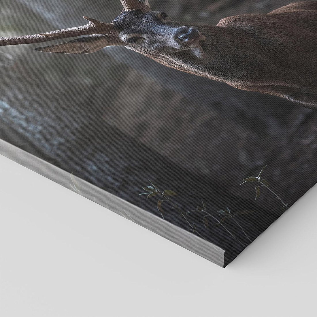 Ten obraz ukazuje jelenia w malowniczym lesie, tworząc atmosferę harmonii i naturalnego piękna. Jego tekstura i kontrasty wprowadzą do wnętrza nutę spokoju i siły natury. Doskonały wybór dla miłośników zwierząt i pejzażowych motywów.