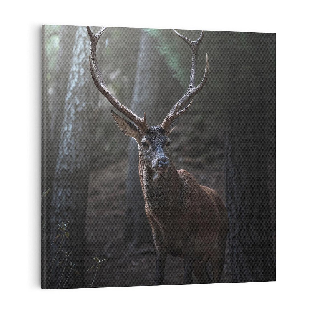 - Obraz na płótnie 70x70 - Jeleń wśród lasu