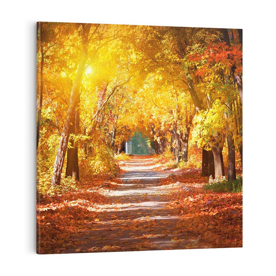 - Obraz na płótnie 70x70 - Jesienna Droga: Przechadzka wśród Drzew