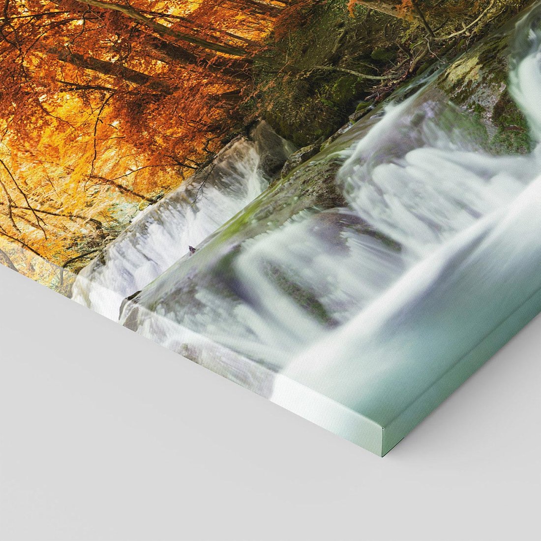 Odkryj urok jesieni w pejzażu leśnym dzięki temu malowniczemu obrazowi przedstawiającemu wodospad. Kolorowe liście, strumień wody i magiczna atmosfera tworzą nastrojowy obraz. Ta kompozycja dodaje przytulności i sezonowego uroku, idealna dla miłośników jesiennych krajobrazów i naturalnej harmonii.